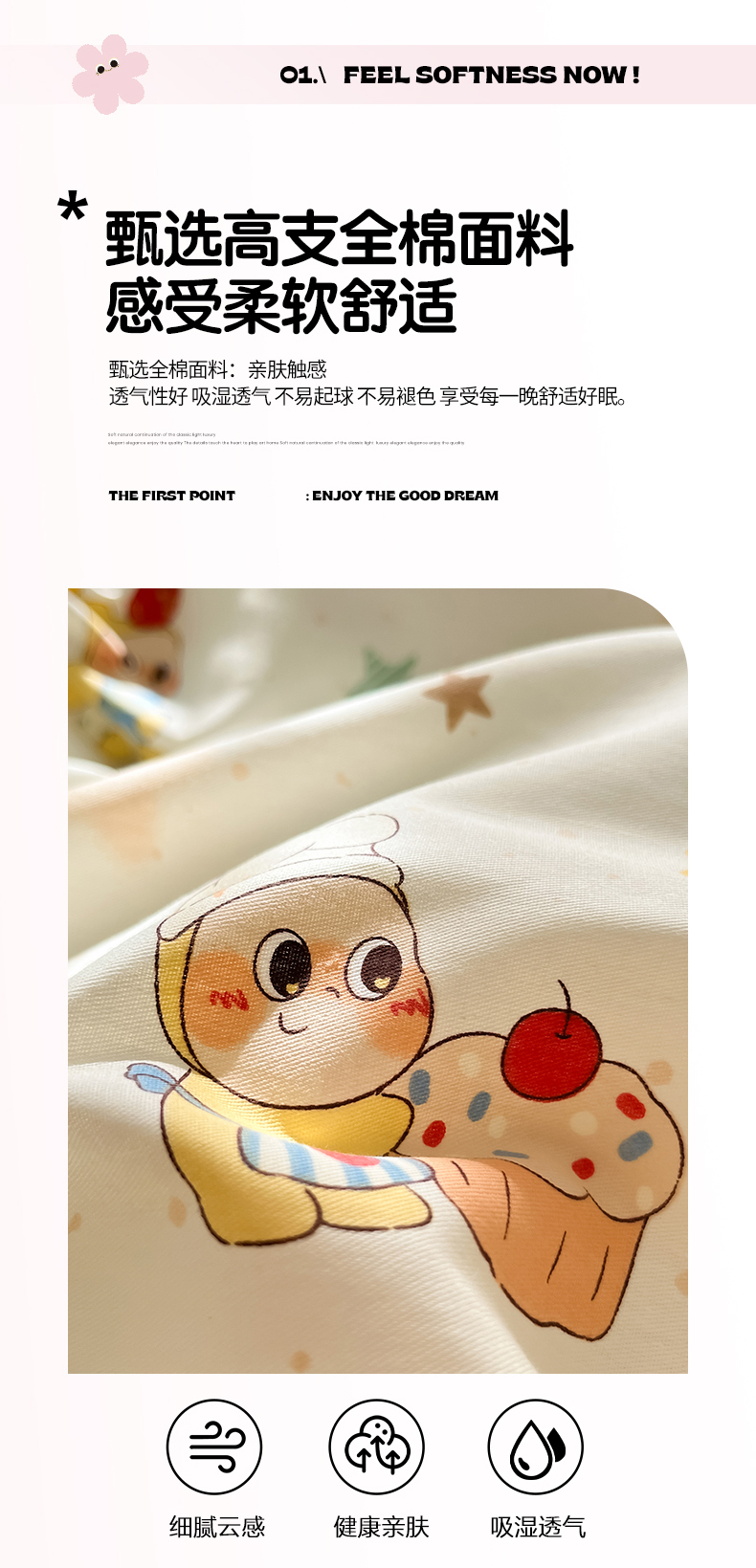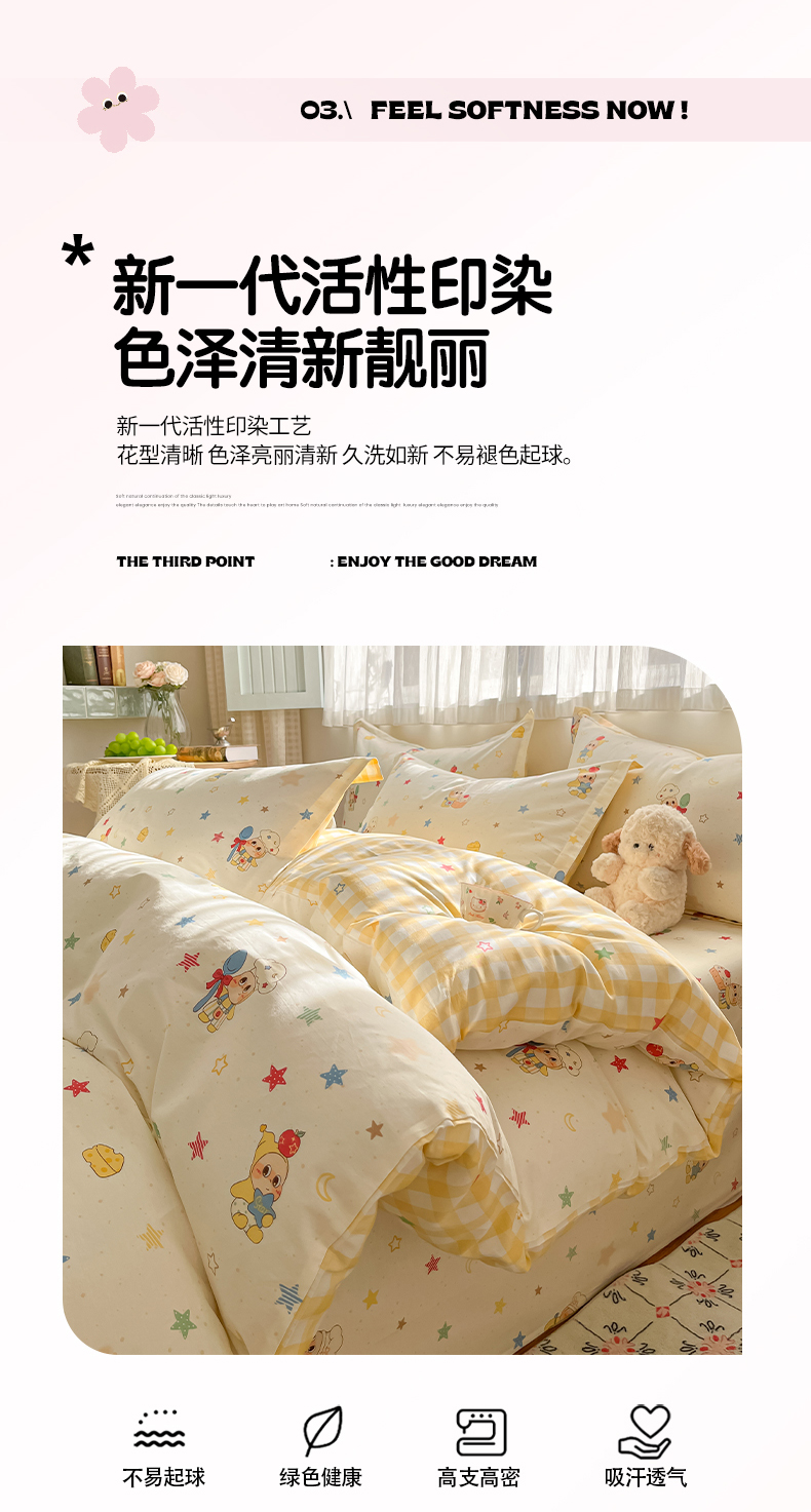 商品名称:花梦欣 2026新款全棉印花系列简约卡通款单被套 快乐小星