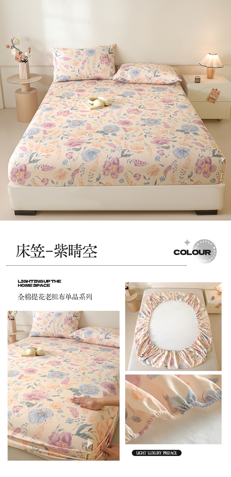 • 91家纺网 家纺一手货源 找家纺 涵宸家纺 2026新款全棉提花老粗布-单床笠 床笠-叶知秋