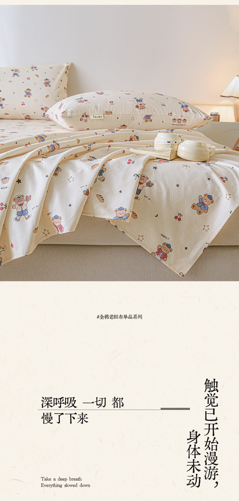 涵宸家纺 2026新款全棉提花老粗布-单床单 床单-活力熊
