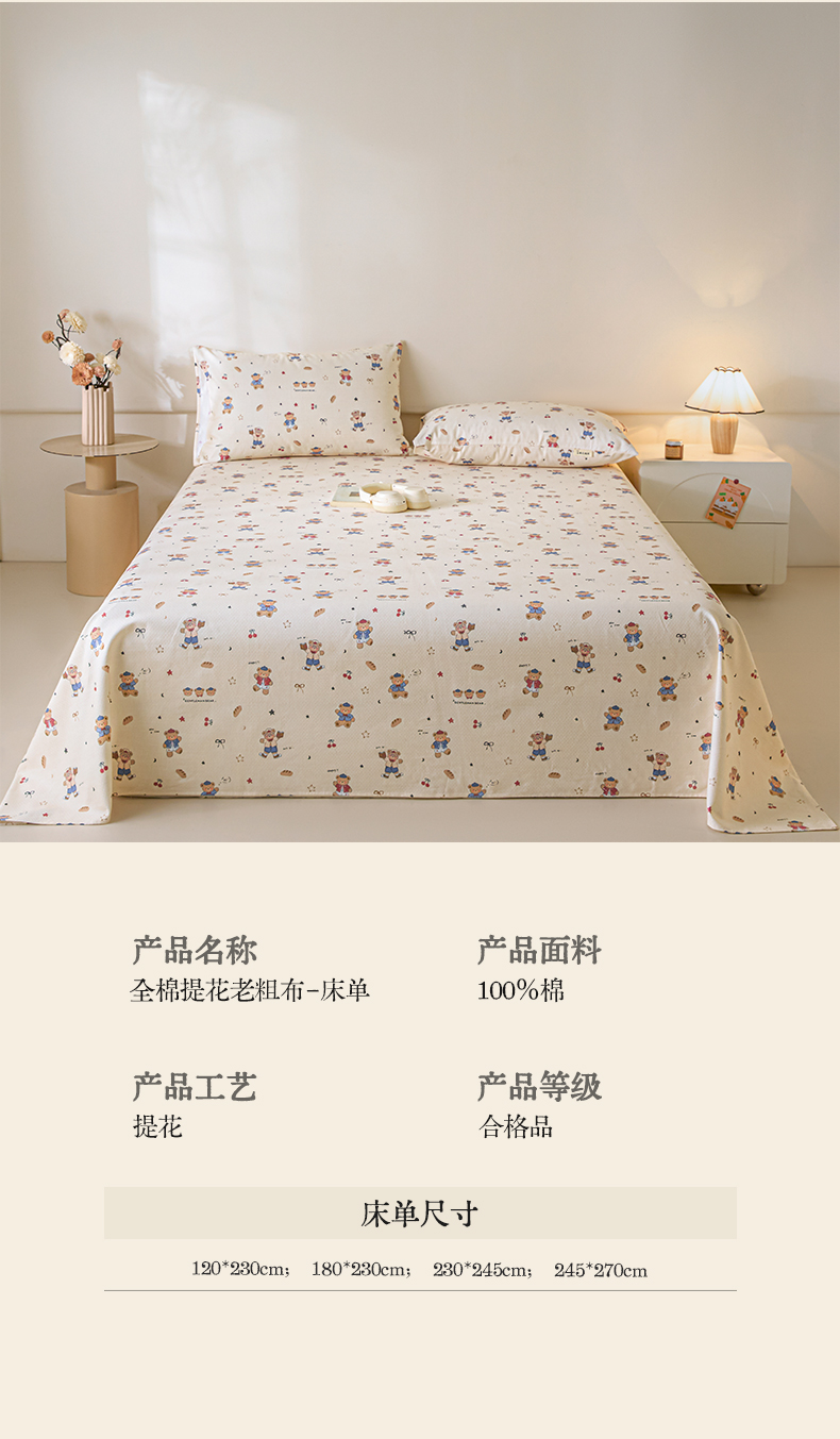 • 91家纺网 家纺一手货源 找家纺 涵宸家纺 2026新款全棉提花老粗布-单床单 床单-活力熊