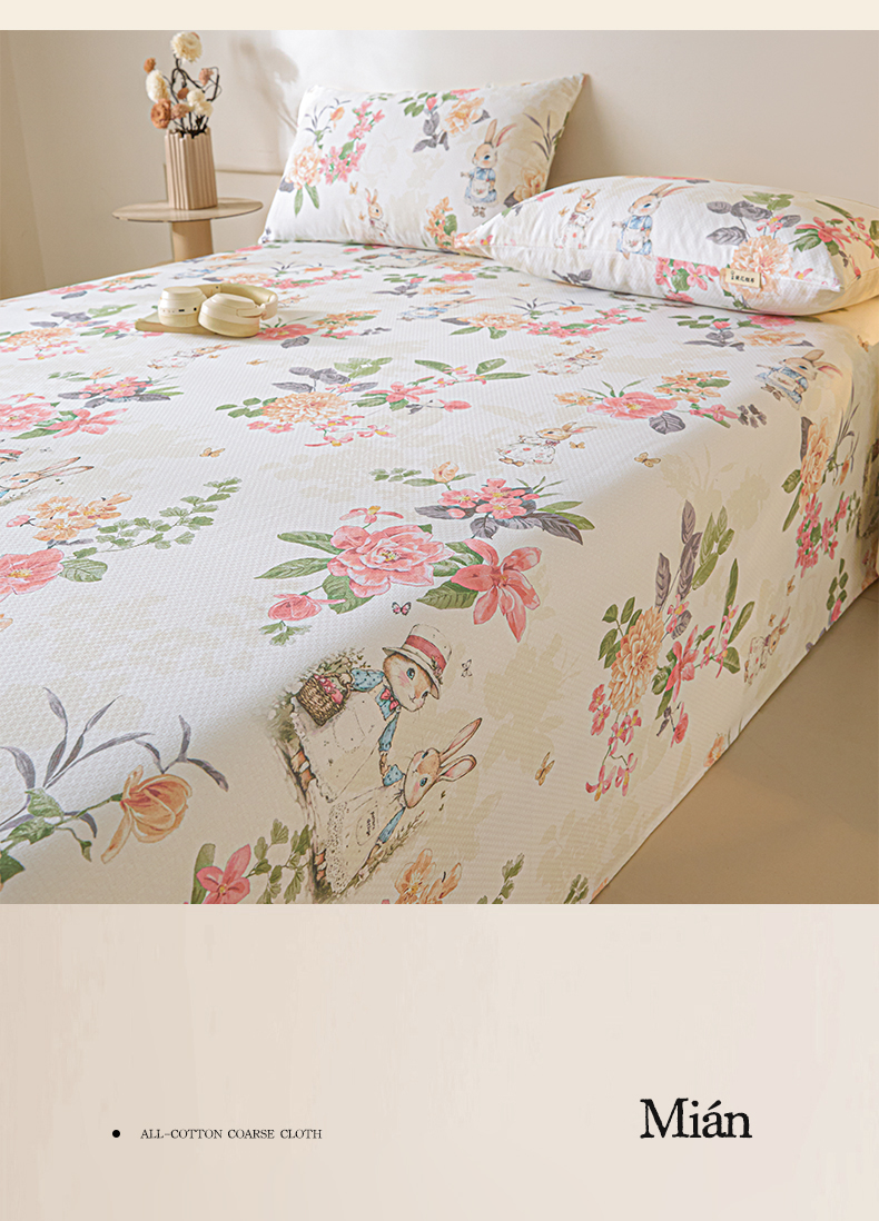 • 91家纺网 家纺一手货源 找家纺 涵宸家纺 2026新款全棉提花老粗布-单床单 床单-兔伴花