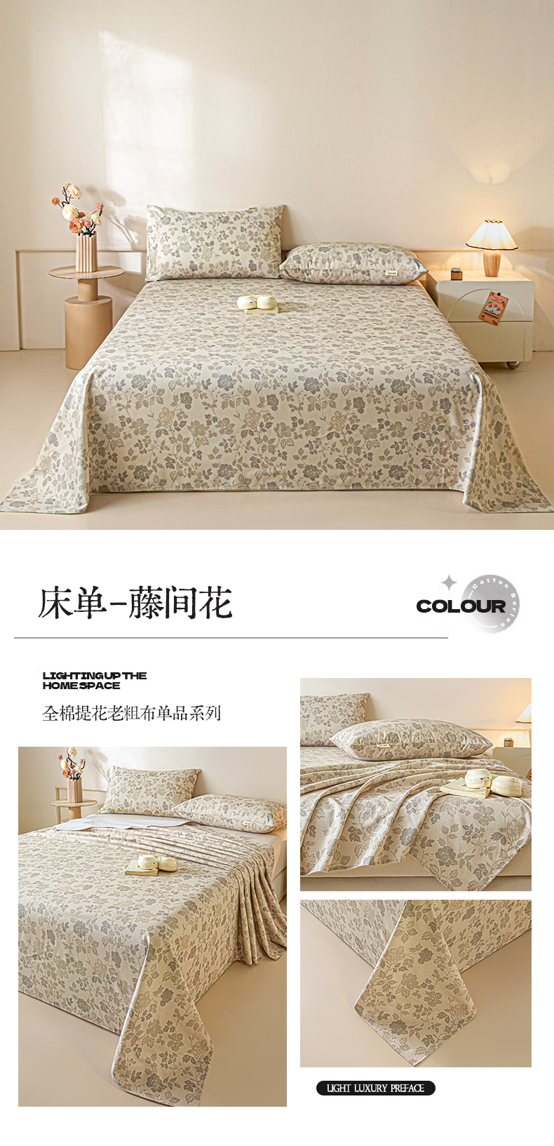 当前位置: 91家纺网 > 商品网购 > 床上用品 > 床单 > 涵宸家纺 2026新款全棉提花老粗布-单床单 床单-兔伴花