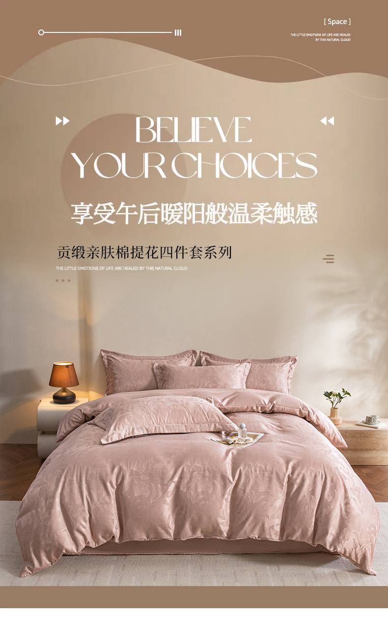 当前位置: 91家纺网 > 商品网购 > 床品套件 > 四件套 > 其它四件套 > 金牛座家纺 2026新款高克重贡缎提花亲肤棉四件套系列 情愫-浅豆沙
