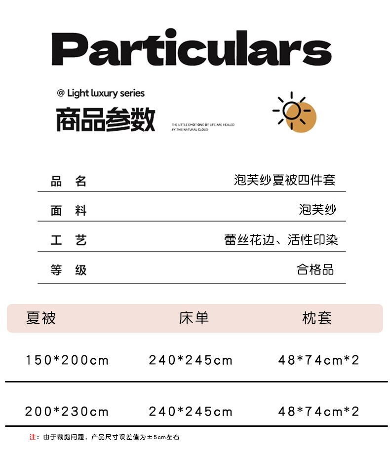 商品名称:金梦拉家纺 2026新款泡芙纱全棉小黑花边夏被四件套 素韵花开