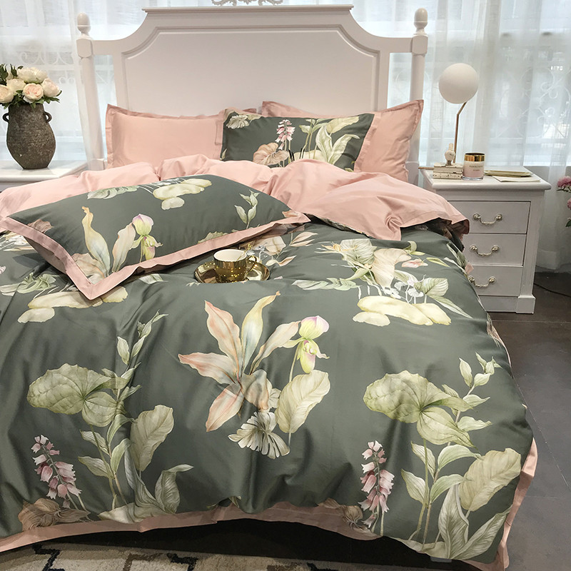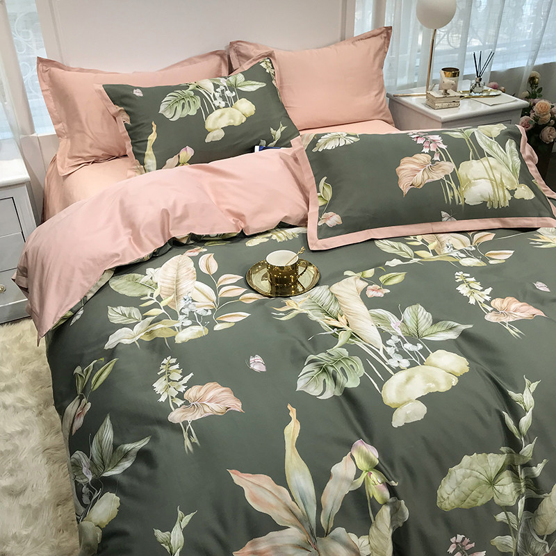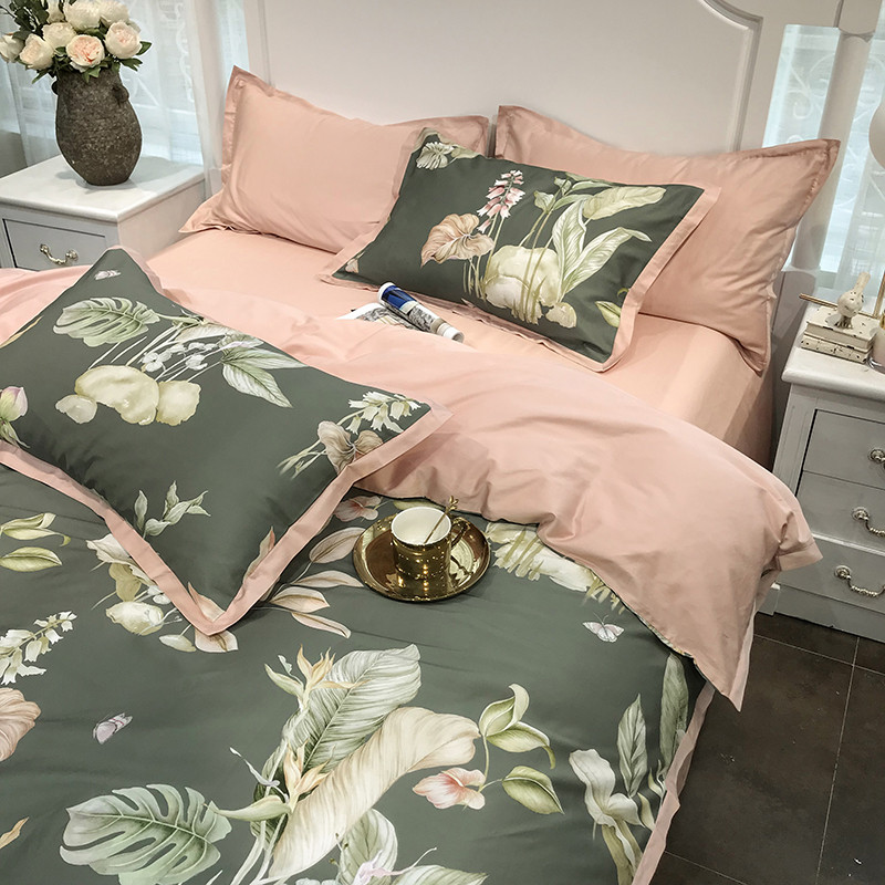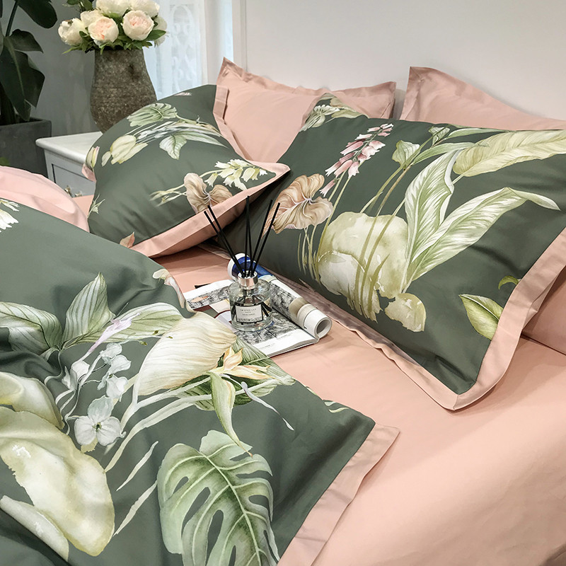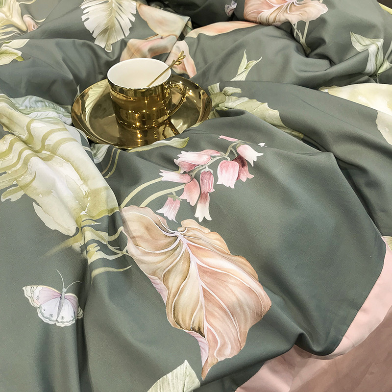 太古汇 60支贡缎长绒棉数码印花小边款四件套 克丽丝-绿