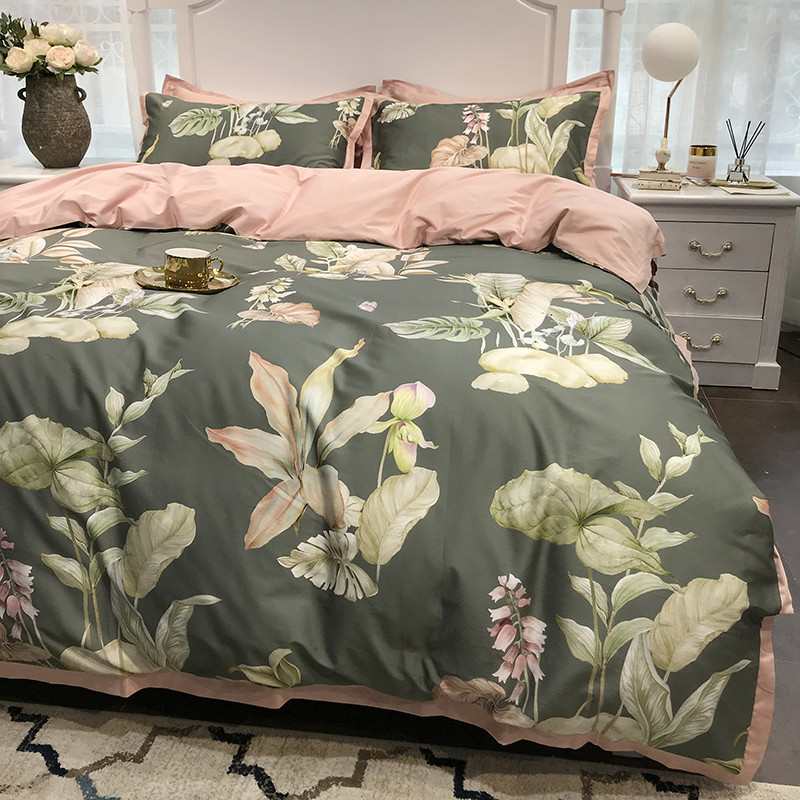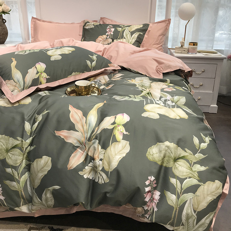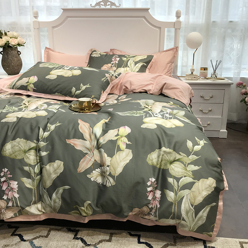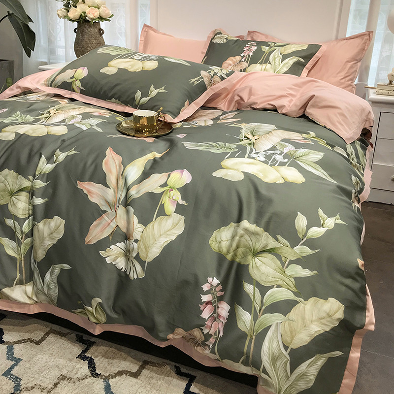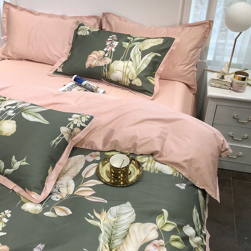 太古汇 60支贡缎长绒棉数码印花小边款四件套 克丽丝-绿