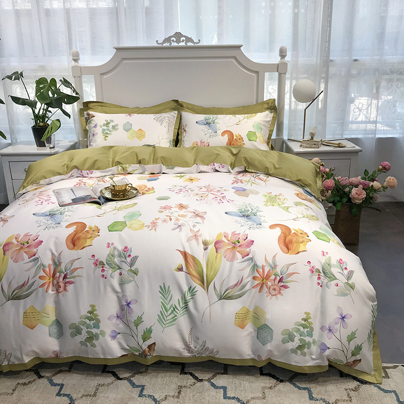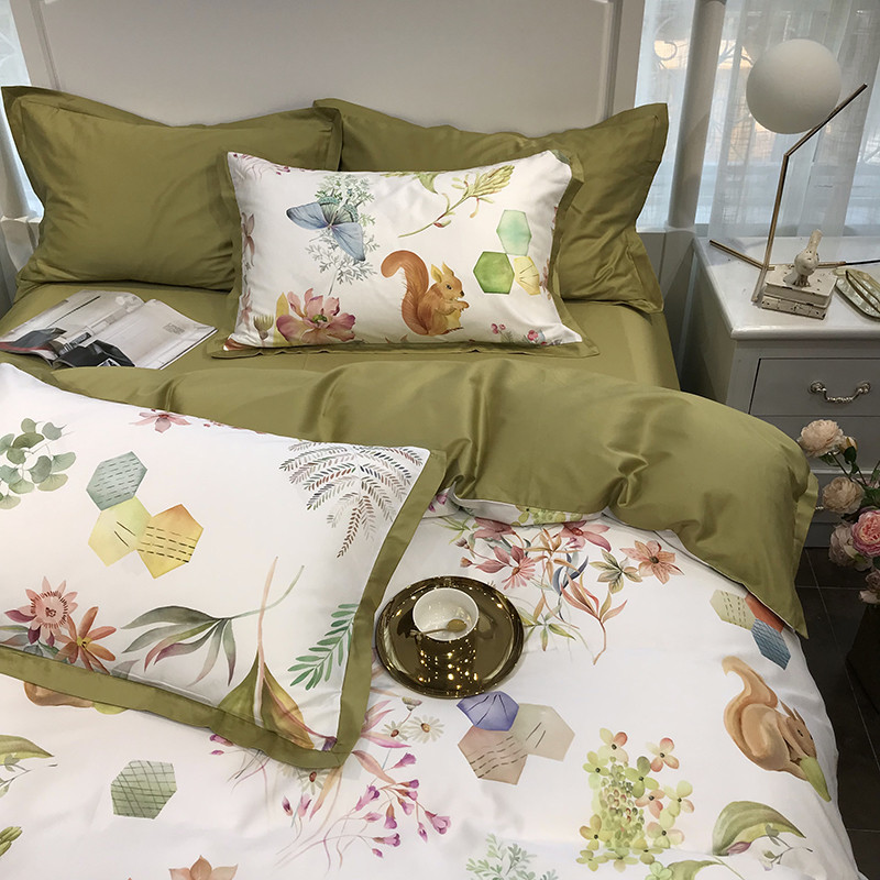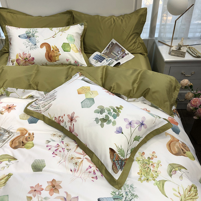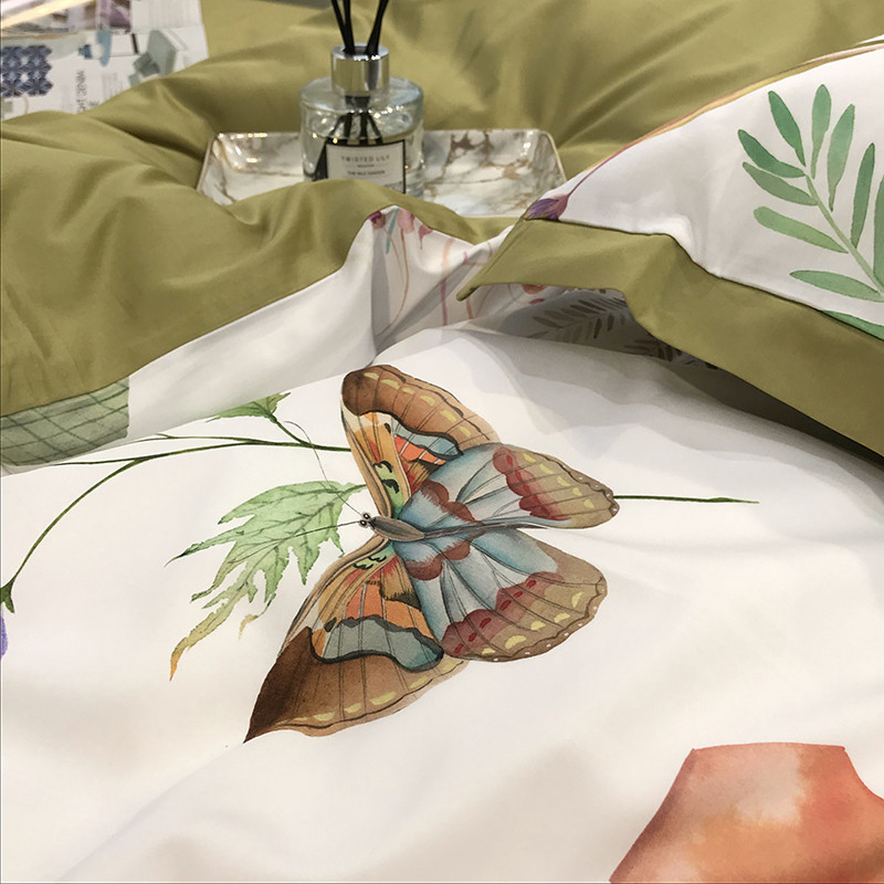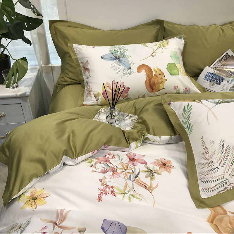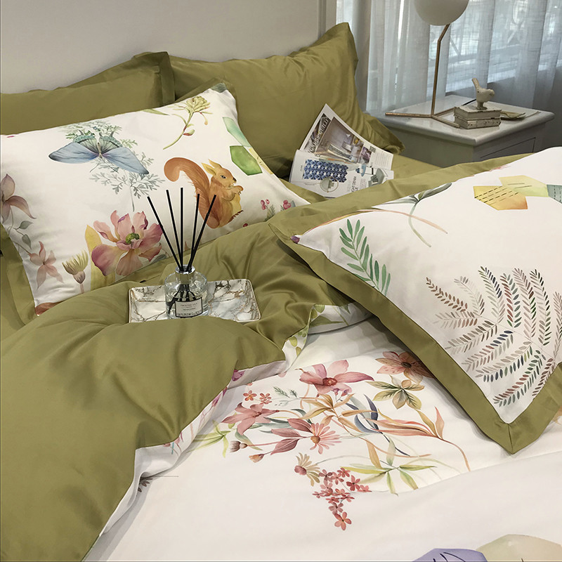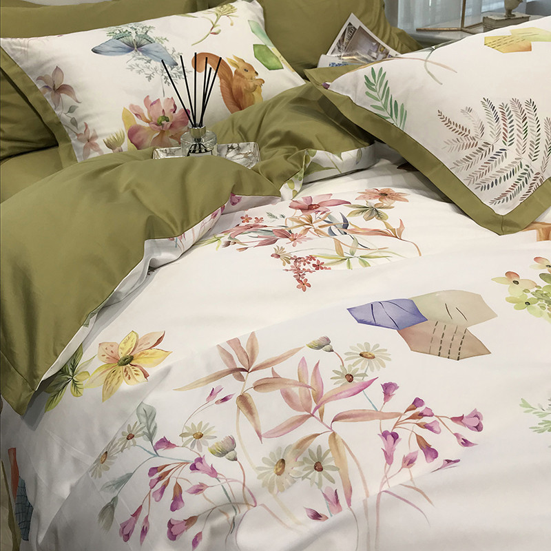 太古汇 60支贡缎长绒棉数码印花小边款四件套 伊微莎-白