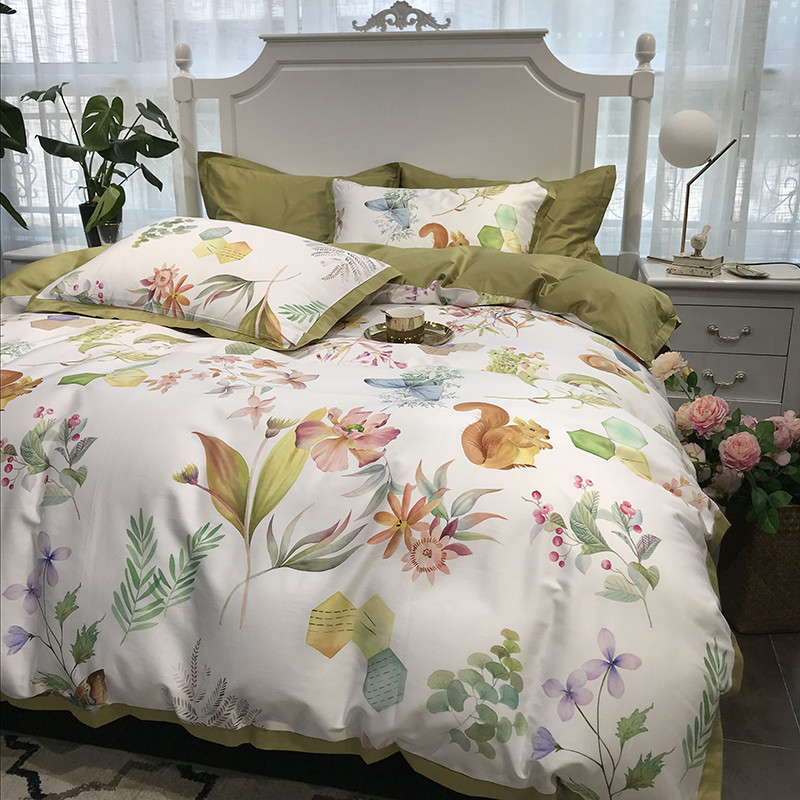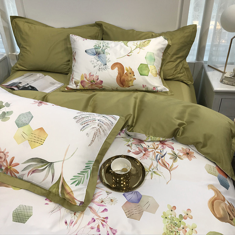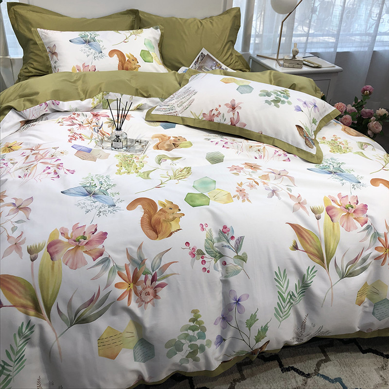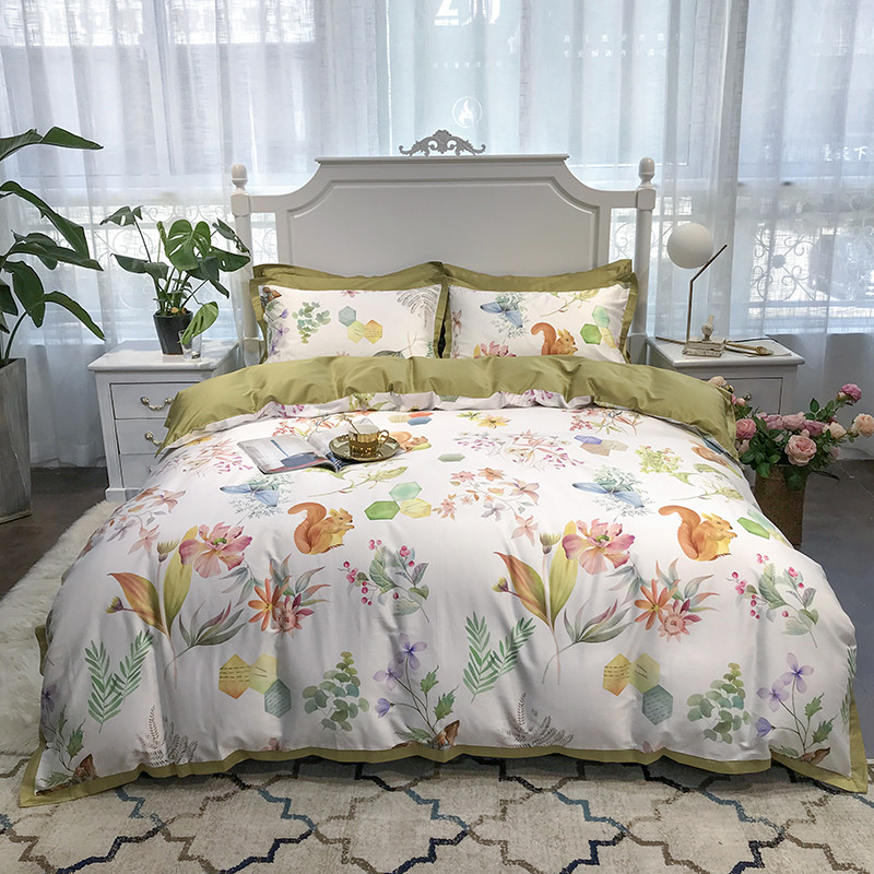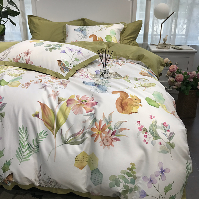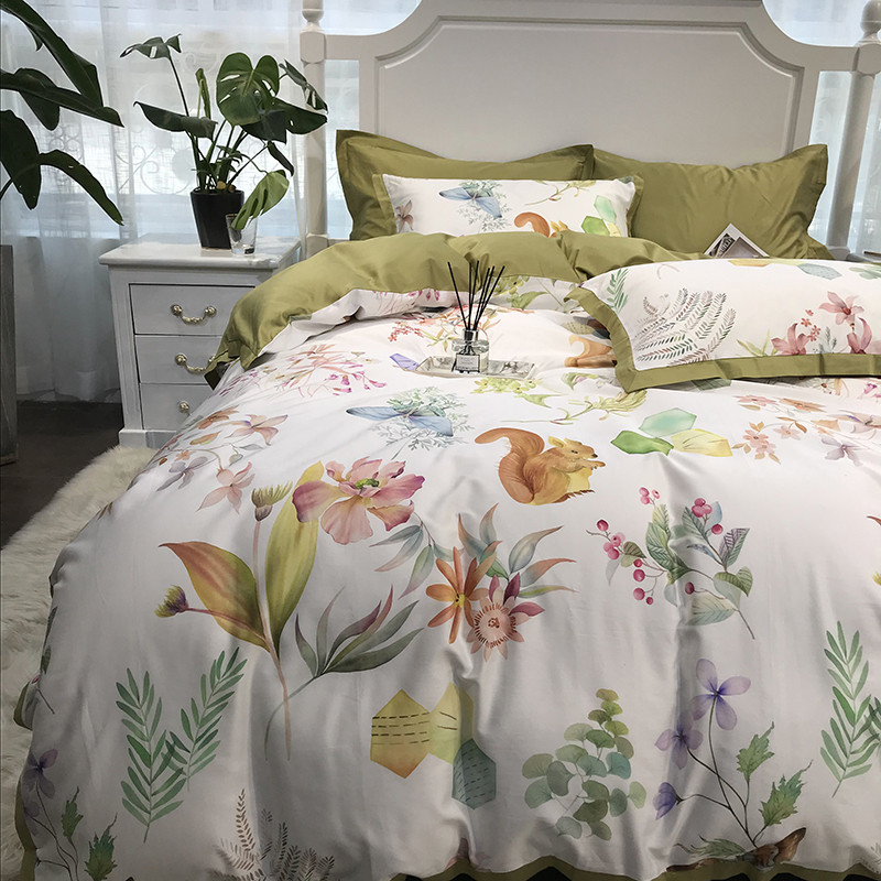 太古汇 60支贡缎长绒棉数码印花小边款四件套 伊微莎-白