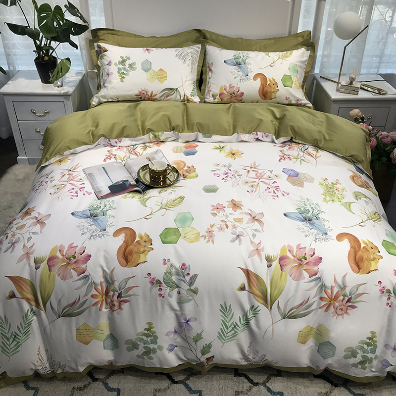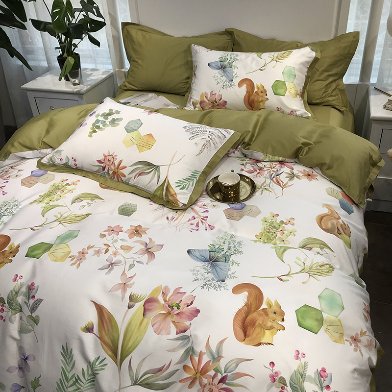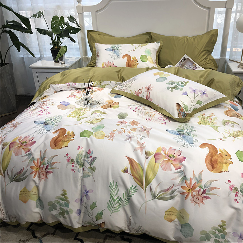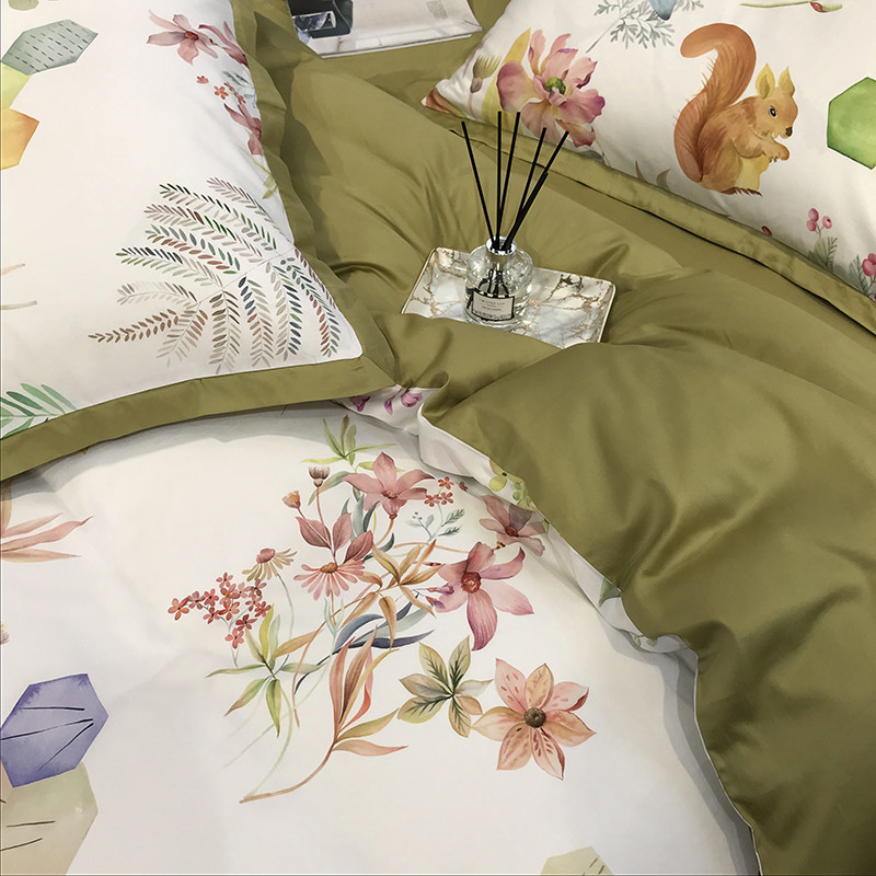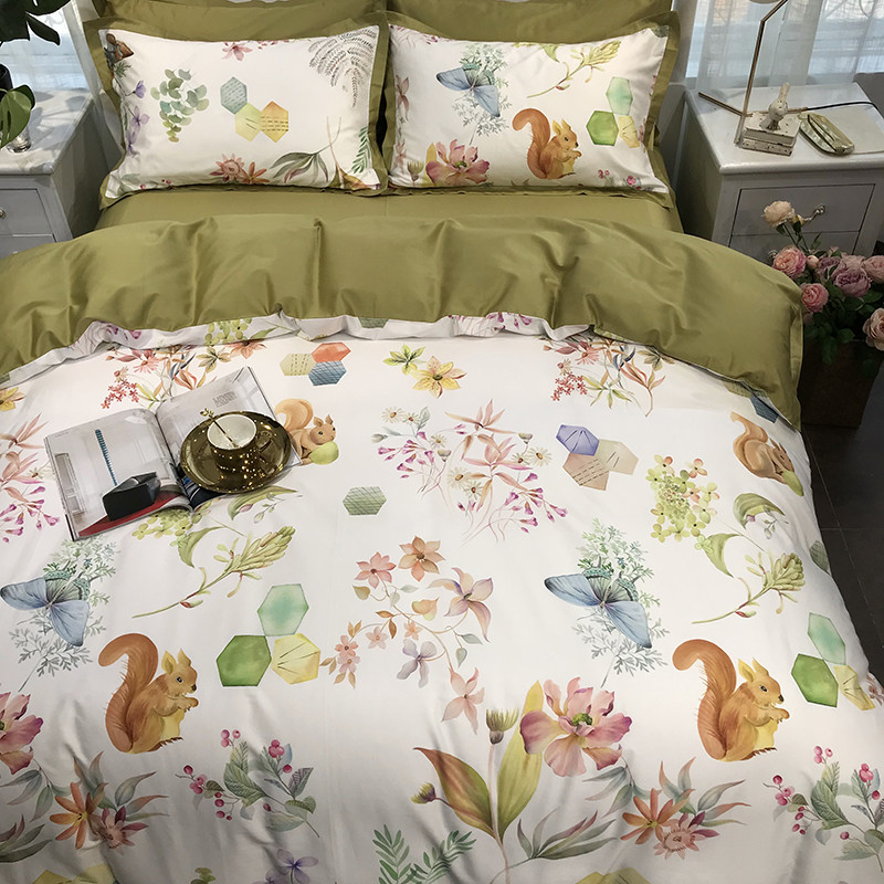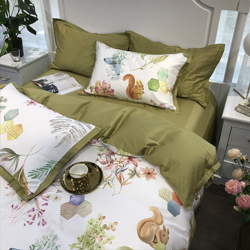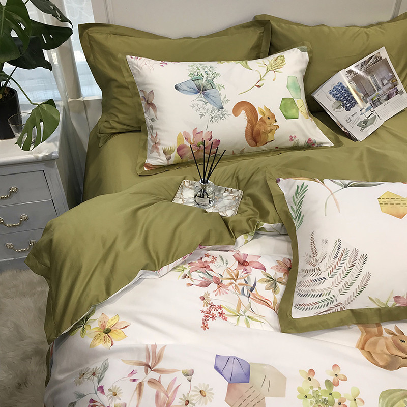 太古汇 60支贡缎长绒棉数码印花小边款四件套 伊微莎-白