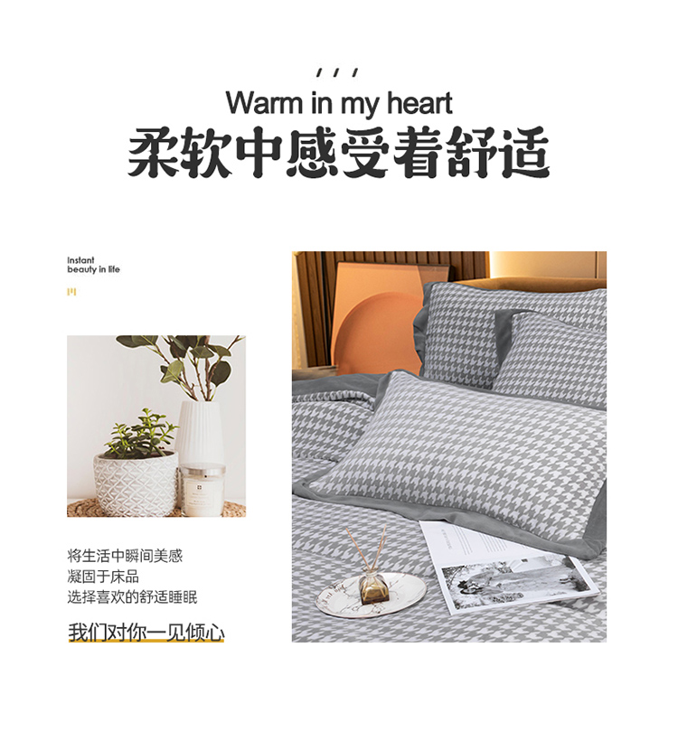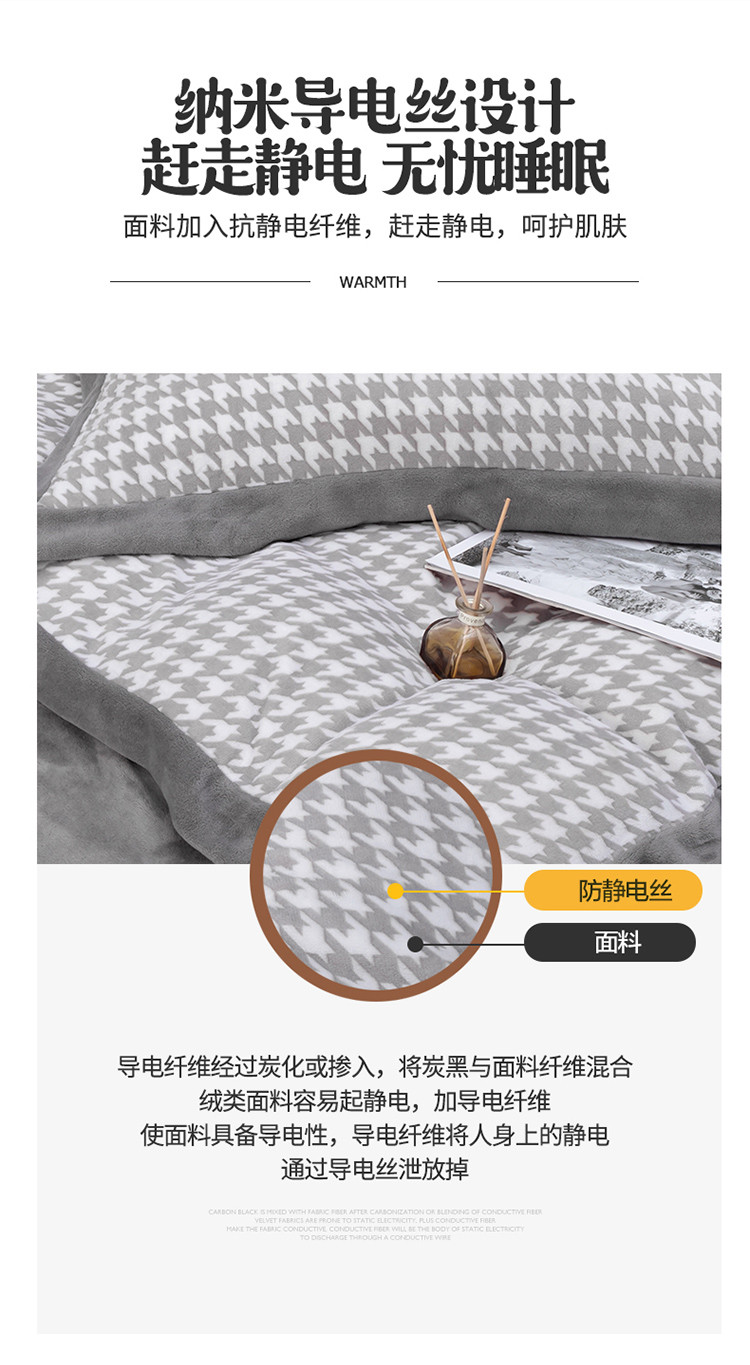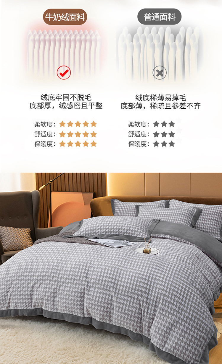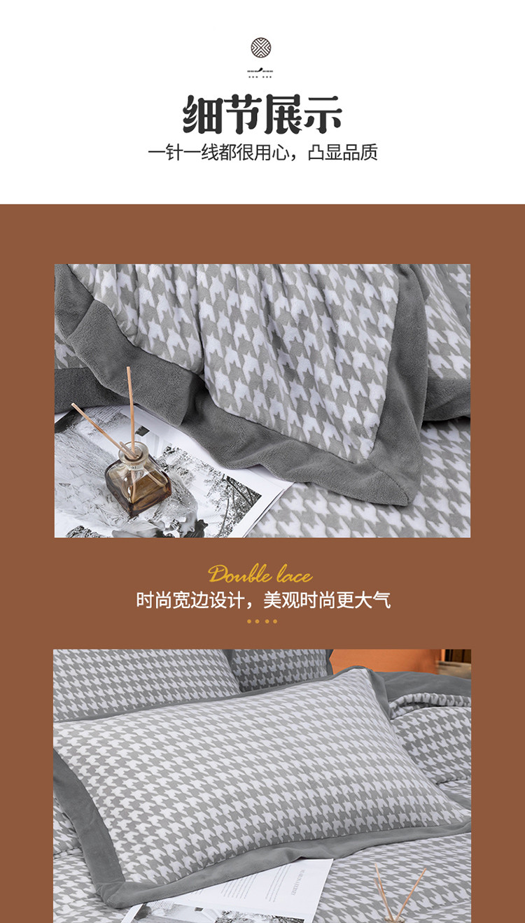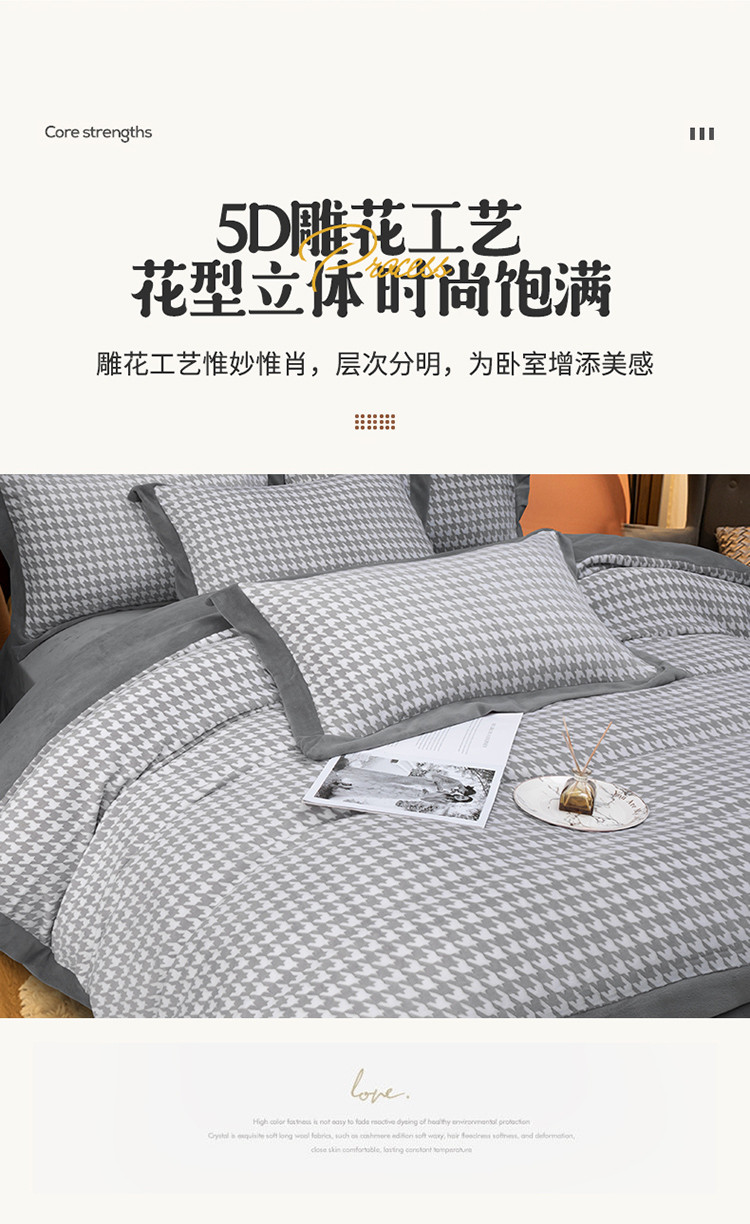 商品名称:娇逸 2021新款牛奶立体雕花绒印花四件套 千鸟格灰