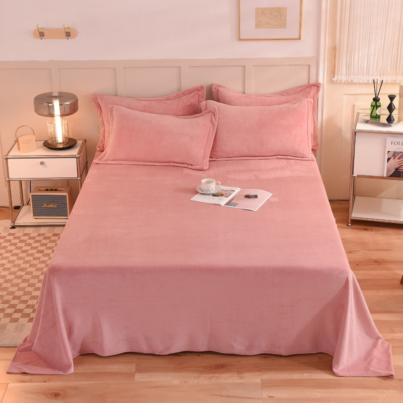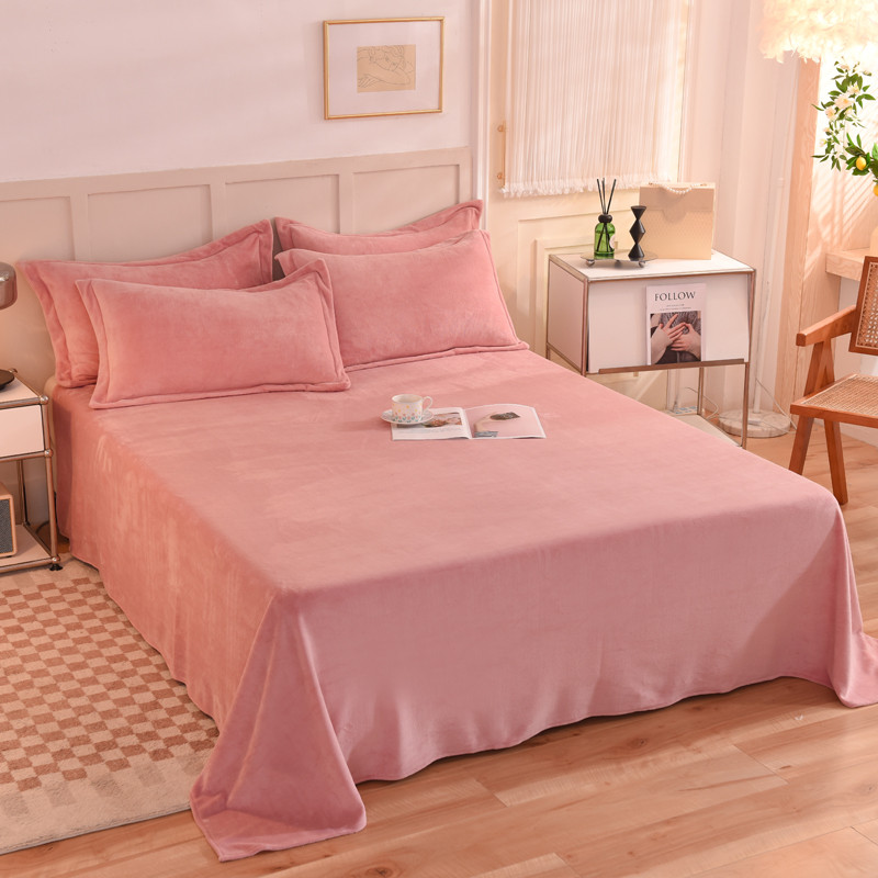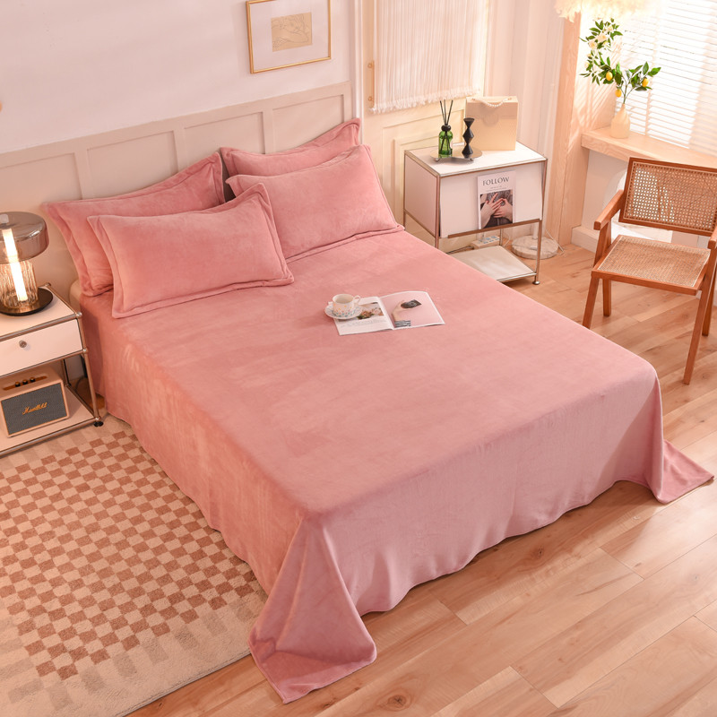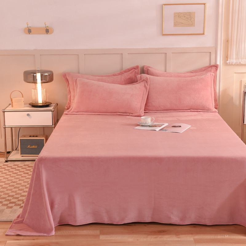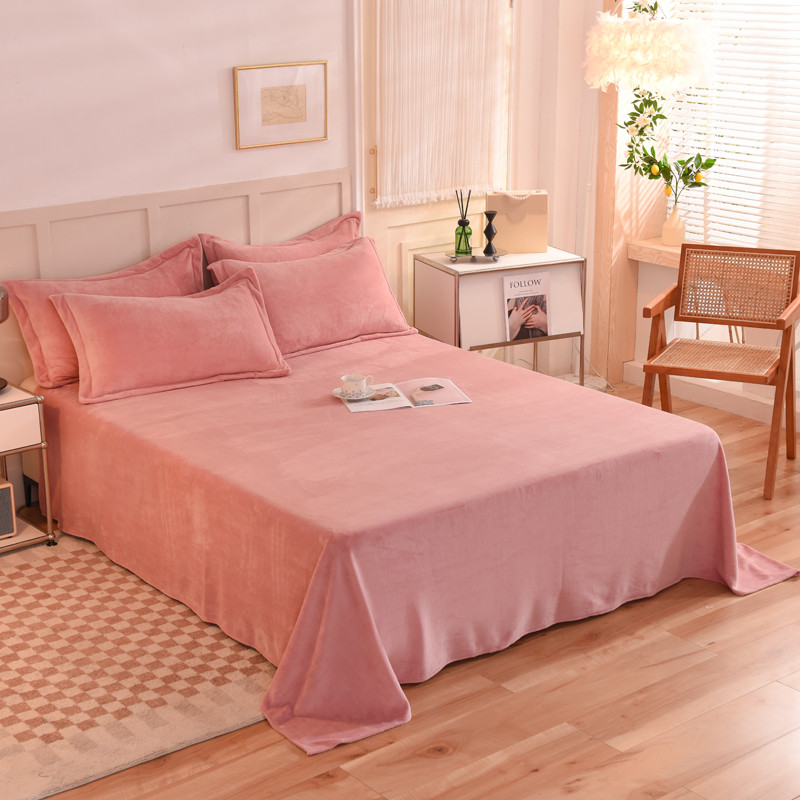 商品名称:甜之梦 2025牛奶绒纯色拼色单品四件套床单(可定制尺寸)淡粉加深灰拼色