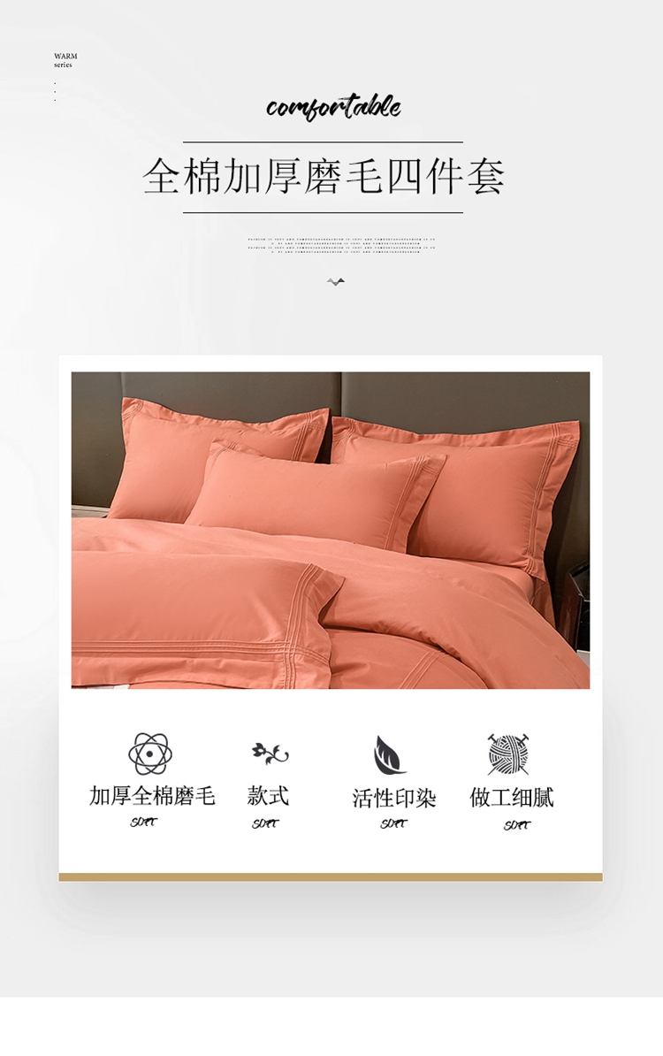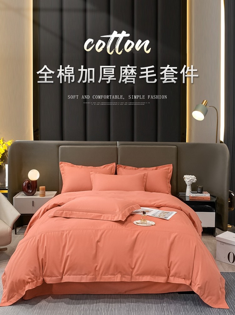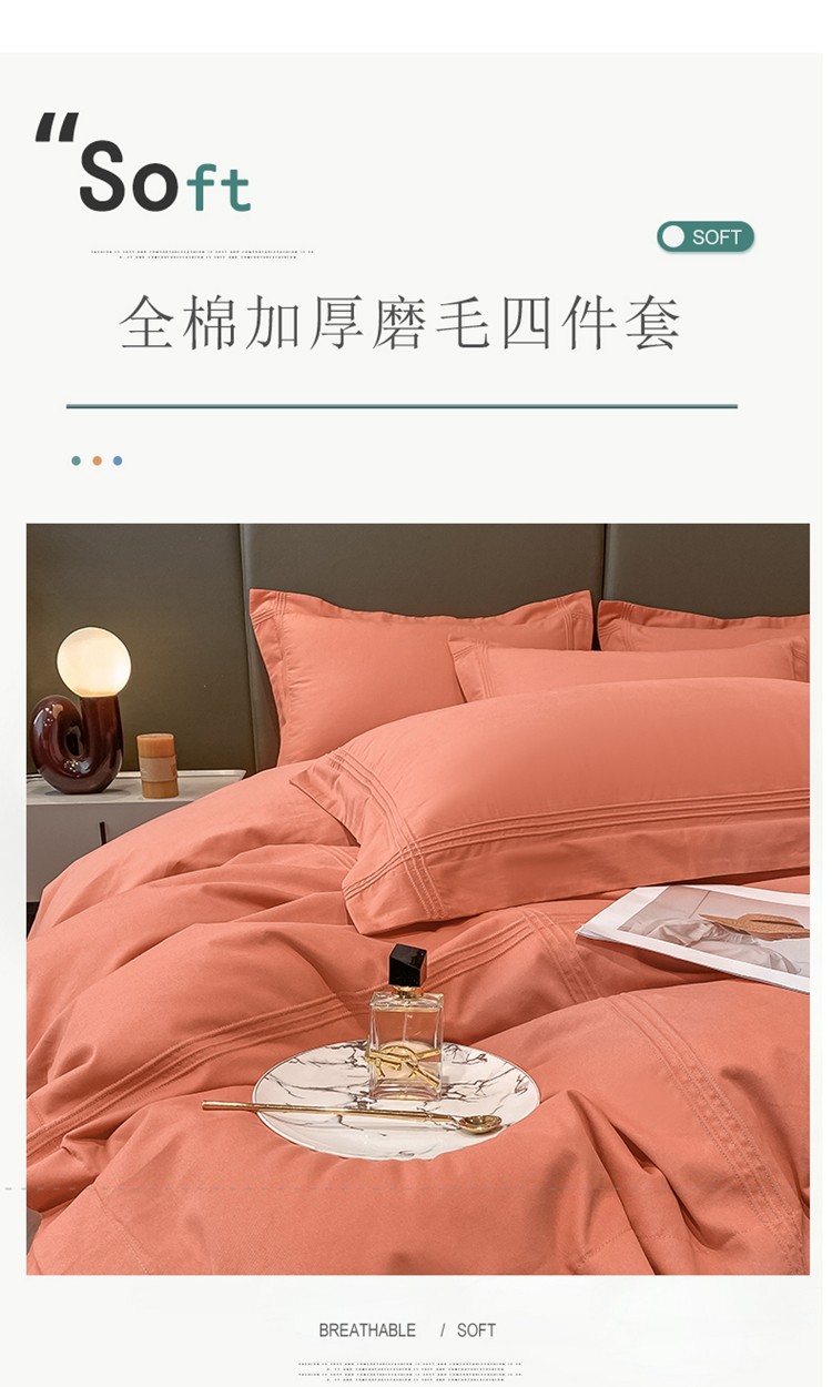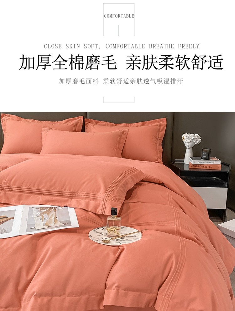 商品名称:安妮2022新款轻奢赫本加厚全棉磨毛四件套 赫本奶油桔