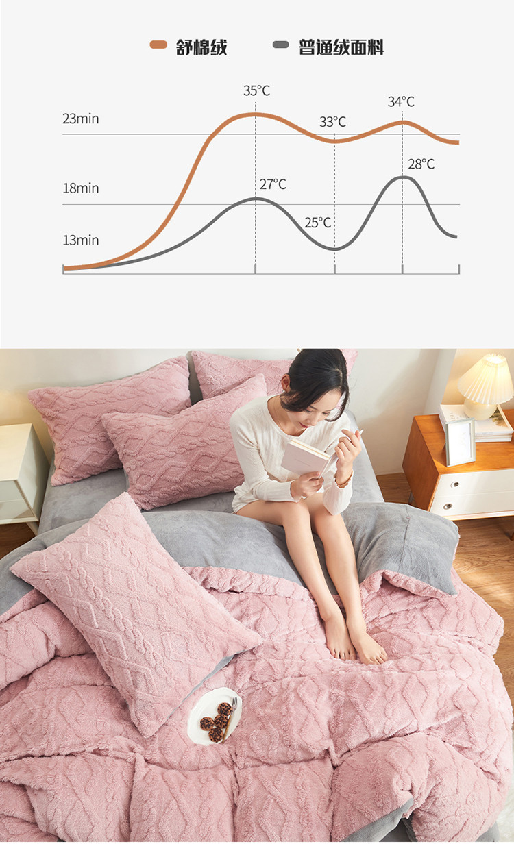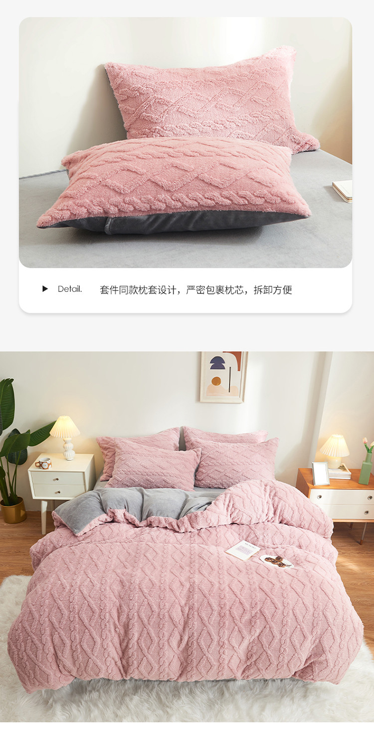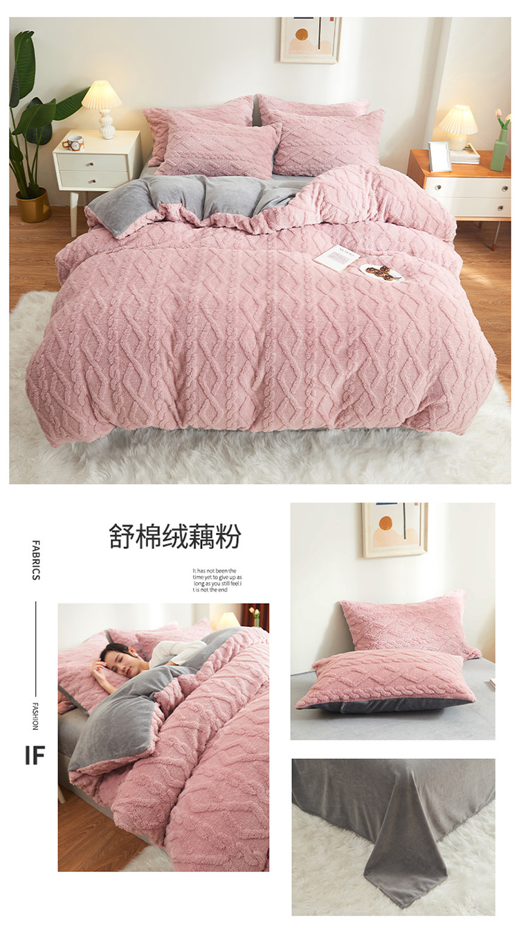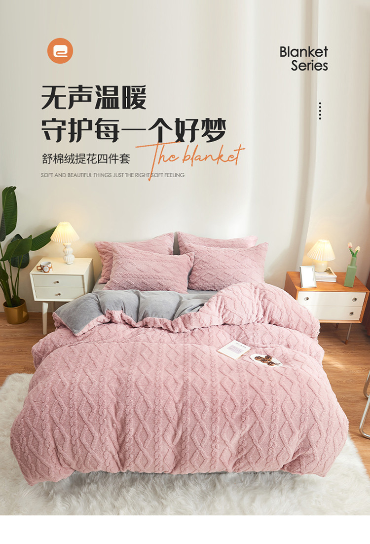 商品名称:吾秀家居 2022新款舒棉绒提花四件套 舒棉绒藕粉