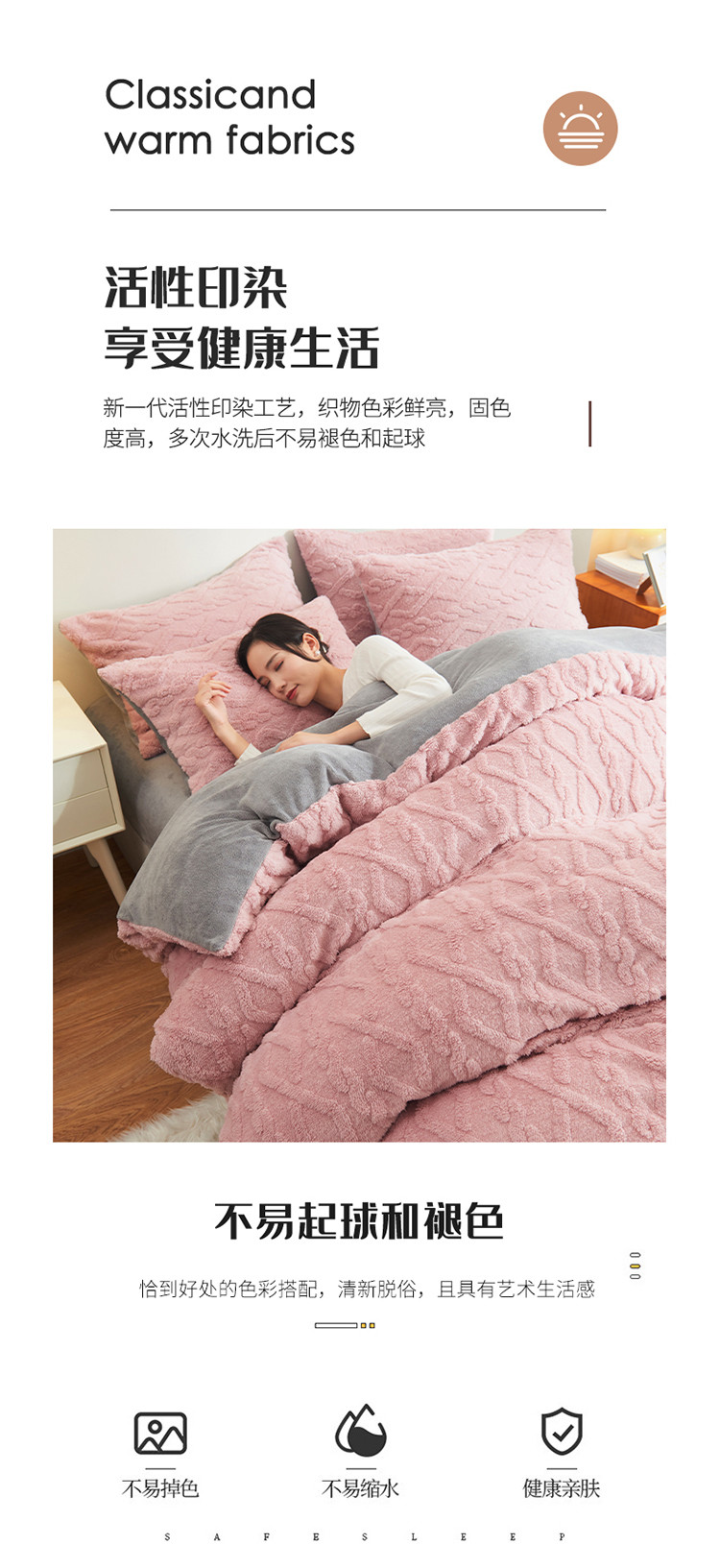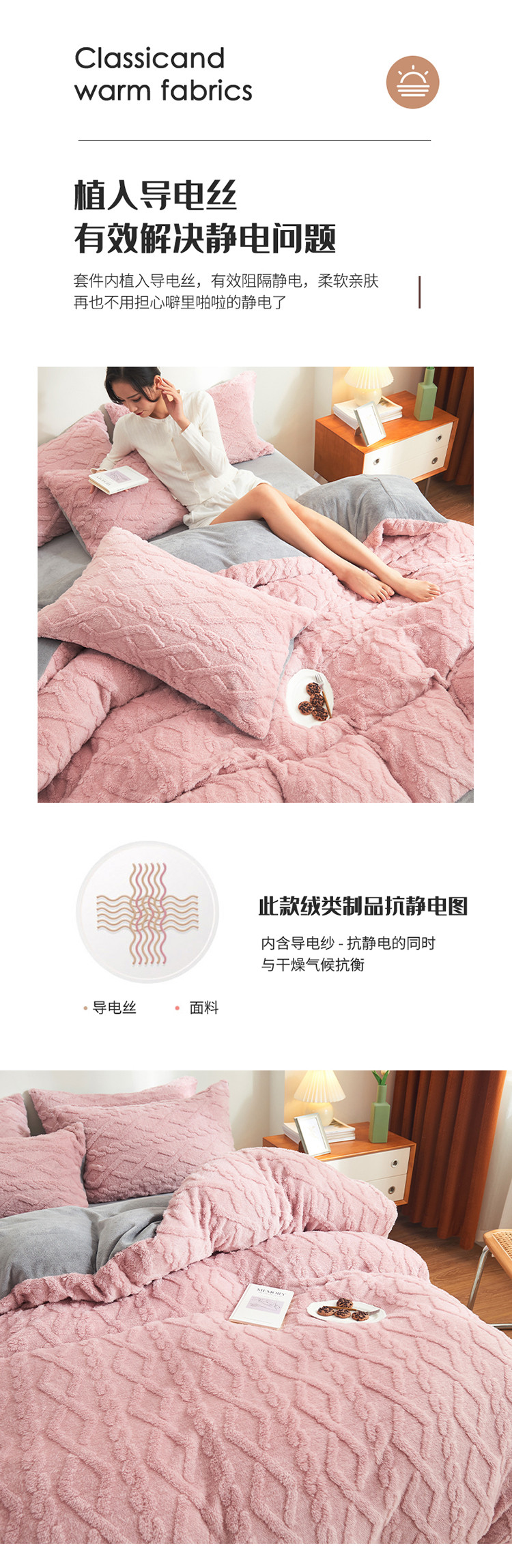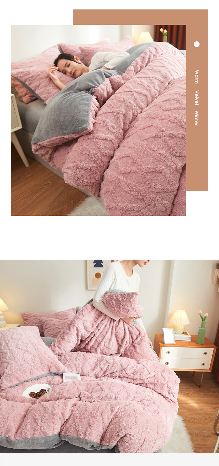 商品名称:吾秀家居 2022新款舒棉绒提花四件套 舒棉绒藕粉