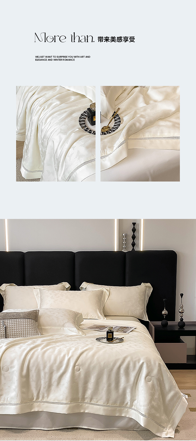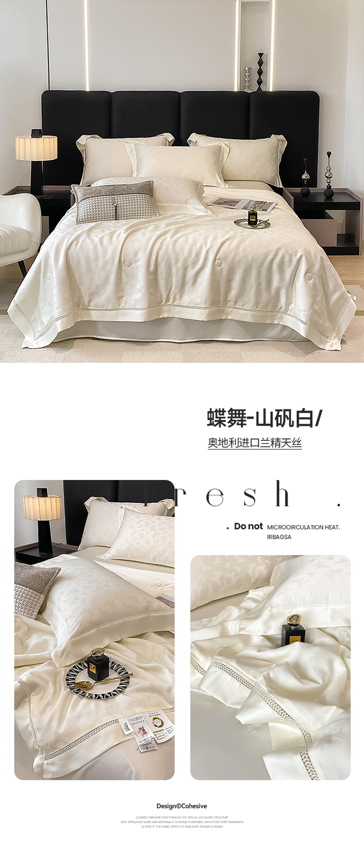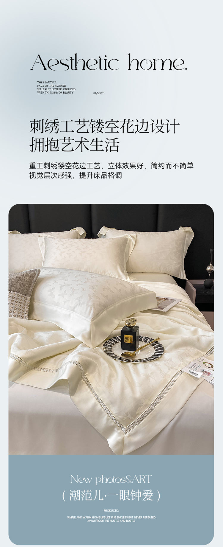 商品名称:娇逸家居 2025新款镂空花边60支天丝提花夏被(专版花型) 蝶舞-山矾白