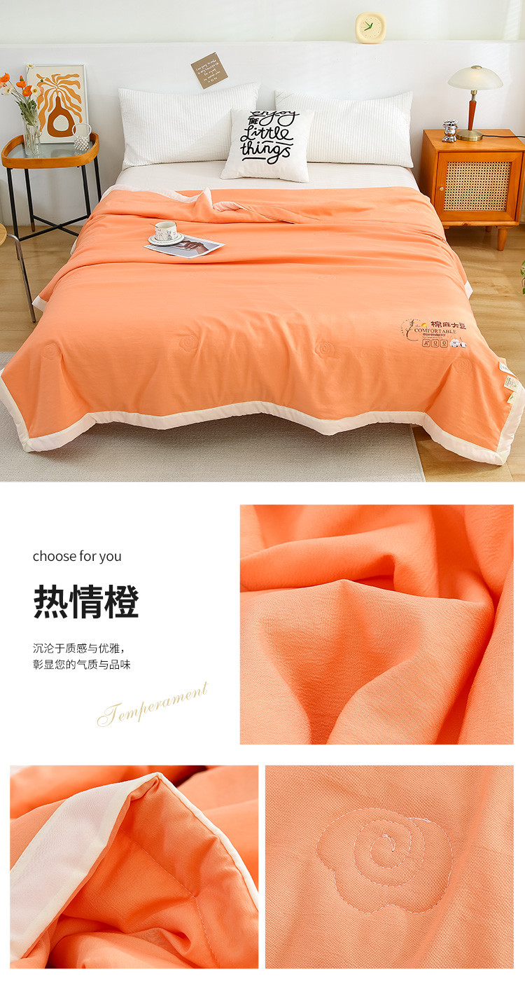 爱宝被业 2025新款水洗棉麻夏被 热情橙