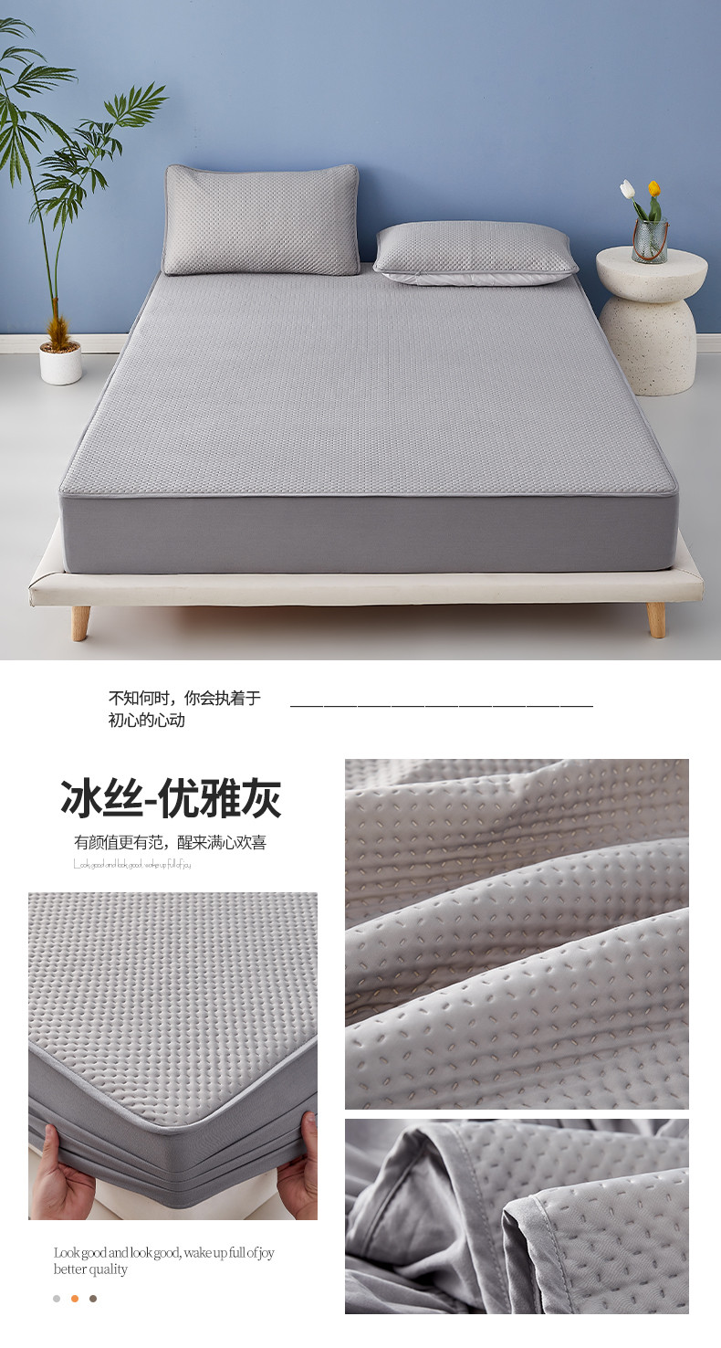 商品名称:格子铺 2023新款A类凉感冰丝夹棉床笠凉席 冰丝-优雅灰
