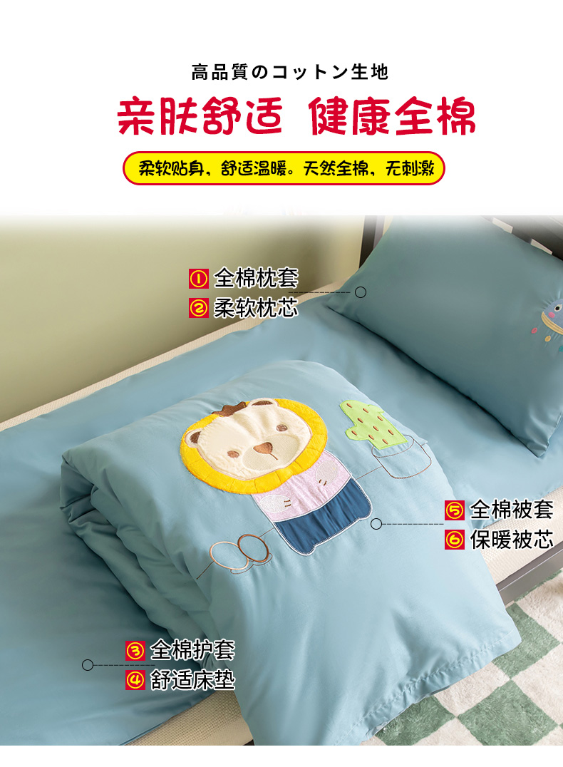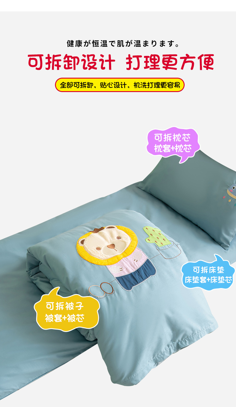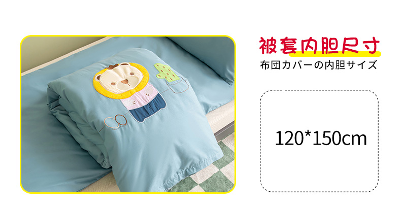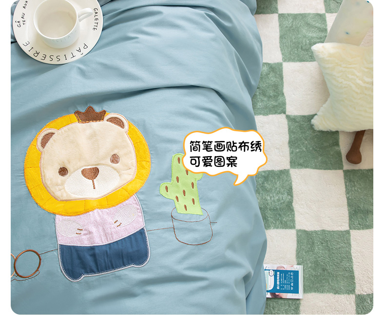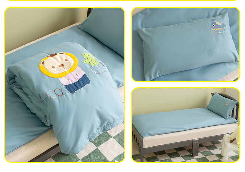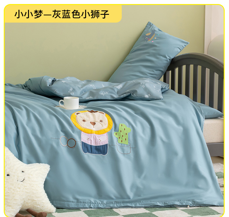 当前位置: 91家纺网 > 商品网购 > 床品套件 > 三件套 > 喜多兔 2023新款40支13372纯棉小小梦绣花幼儿园被子三件套 灰蓝色小狮子