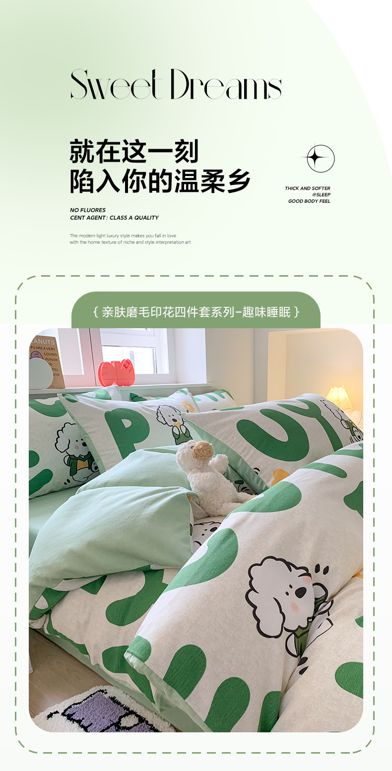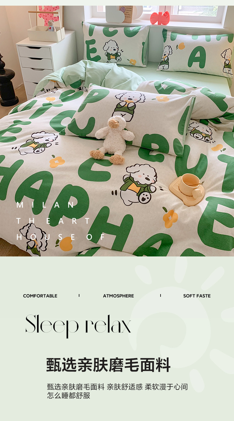澳萝拉 2023新款磨毛四件套-卡通系列 小狗日记