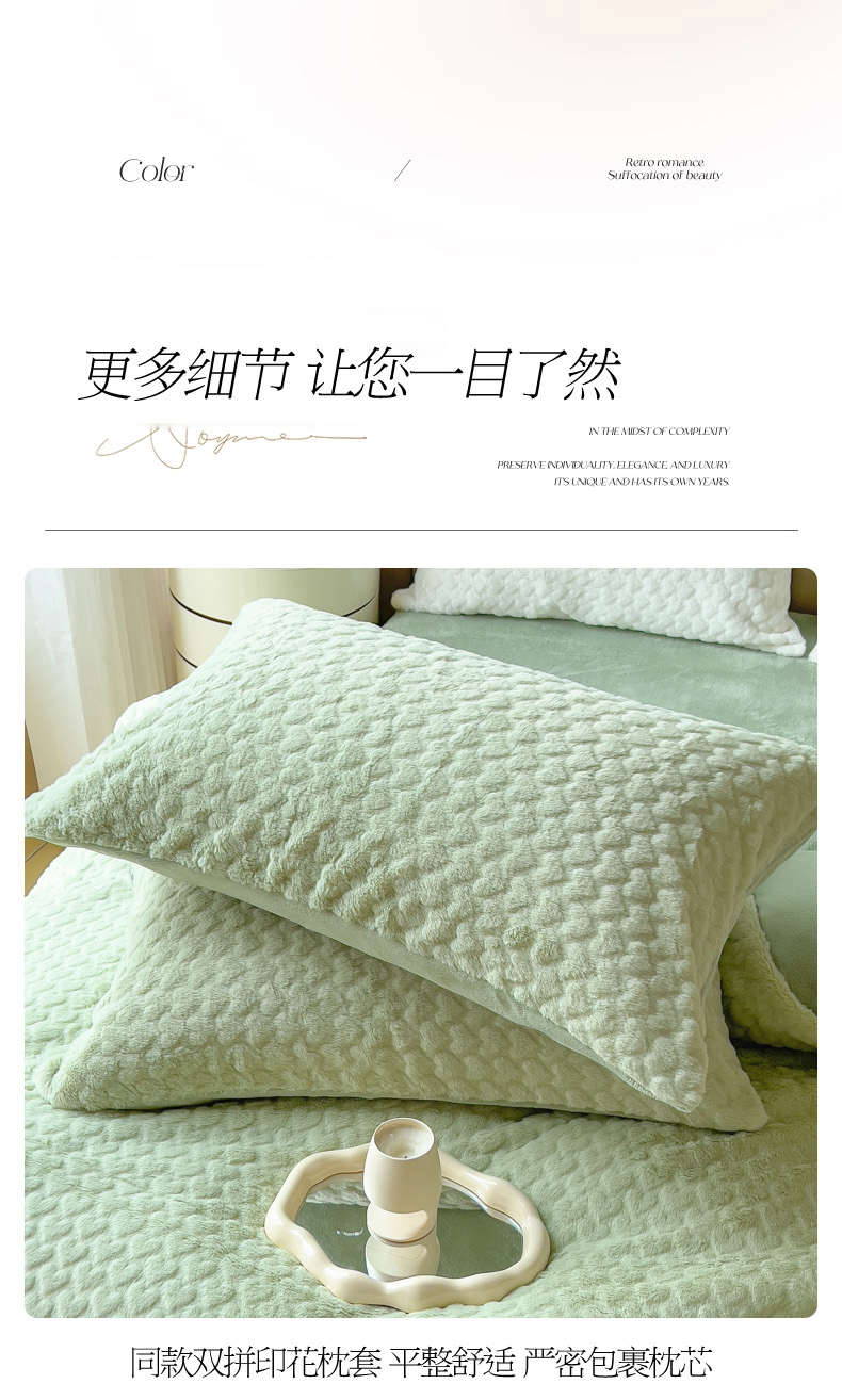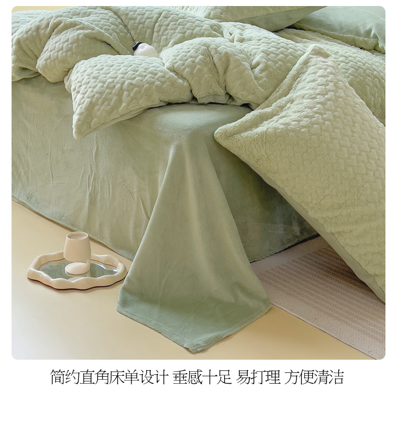商品名称:印季 2024新款爱心款压花兔毛绒四件套 水绿