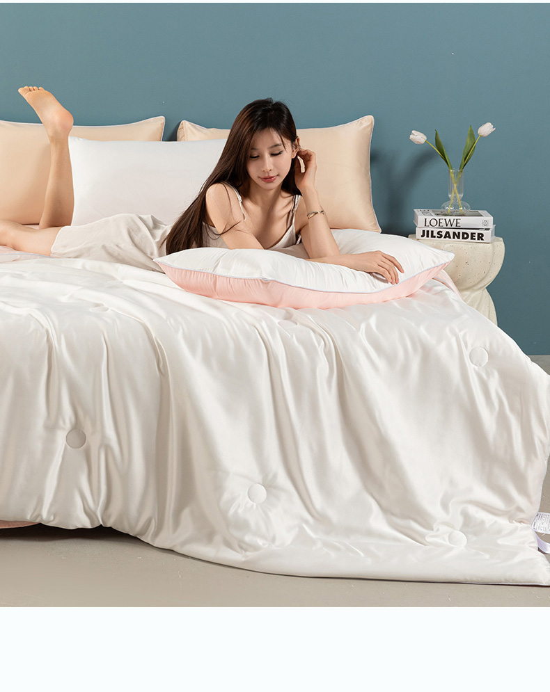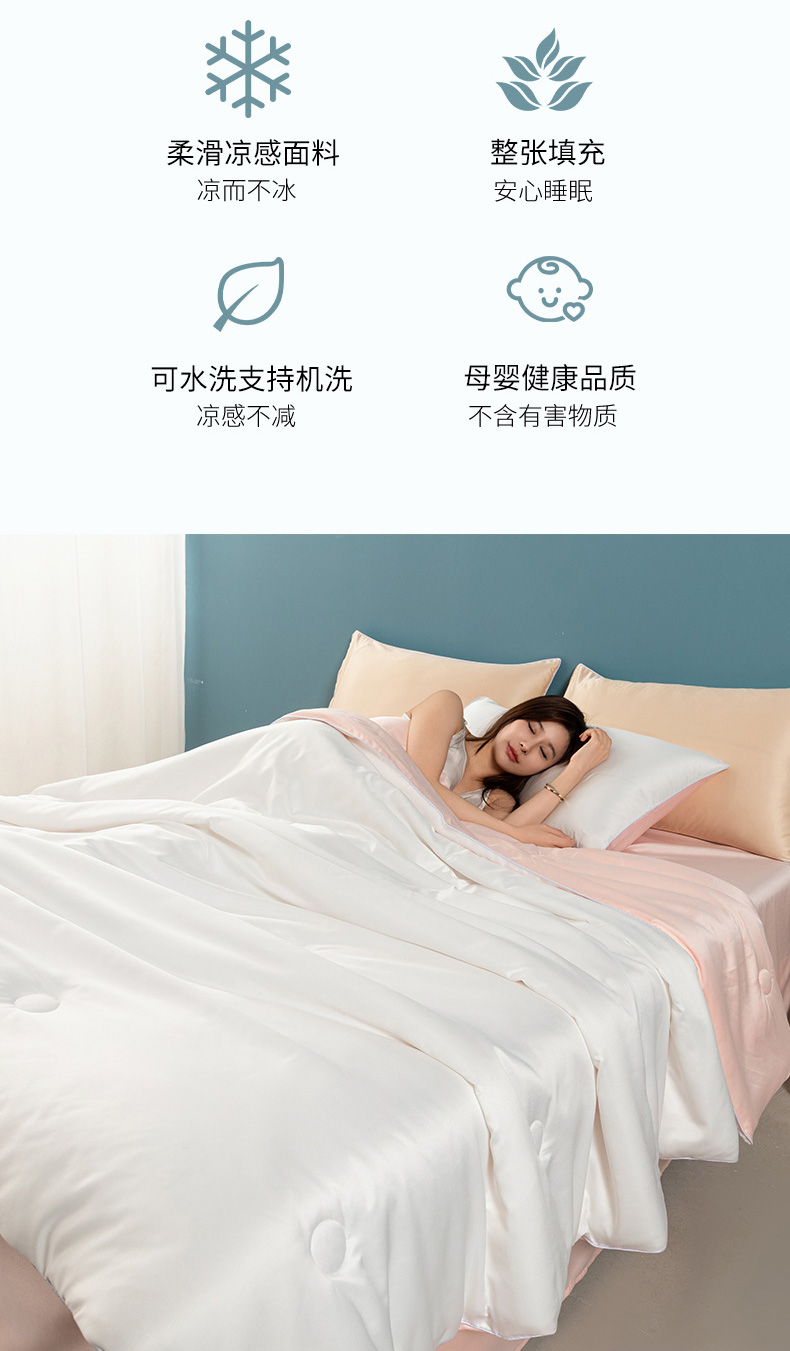 • 91家纺网 家纺一手货源 找家纺 梦镜家纺 2025新款凉感丝双拼夏凉被夏被空调被夏被四件套 双拼奶昔白-玉色