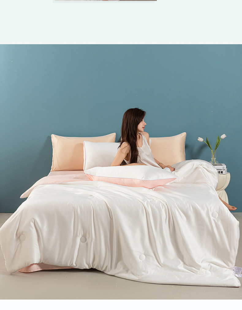 梦镜家纺 2025新款凉感丝双拼夏凉被夏被空调被夏被四件套 双拼奶昔白-玉色