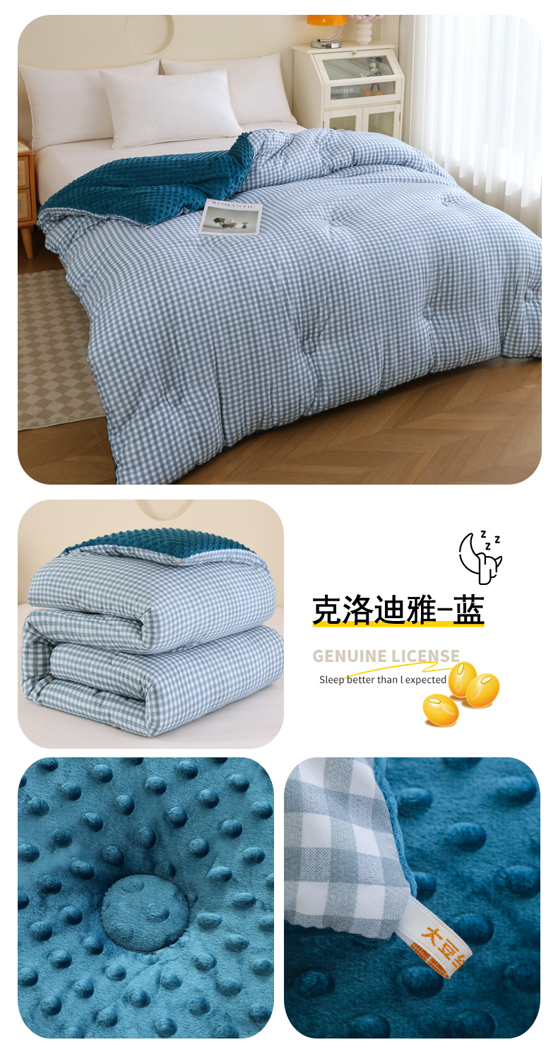 • 91家纺网 家纺一手货源 找家纺 爱宝被业 2025新款水洗棉双层纱豆豆绒被 克洛迪雅-蓝