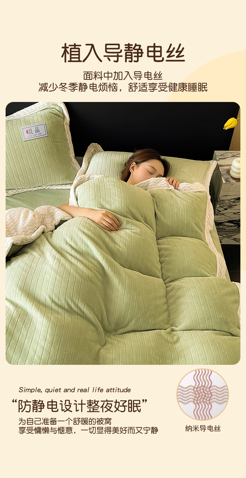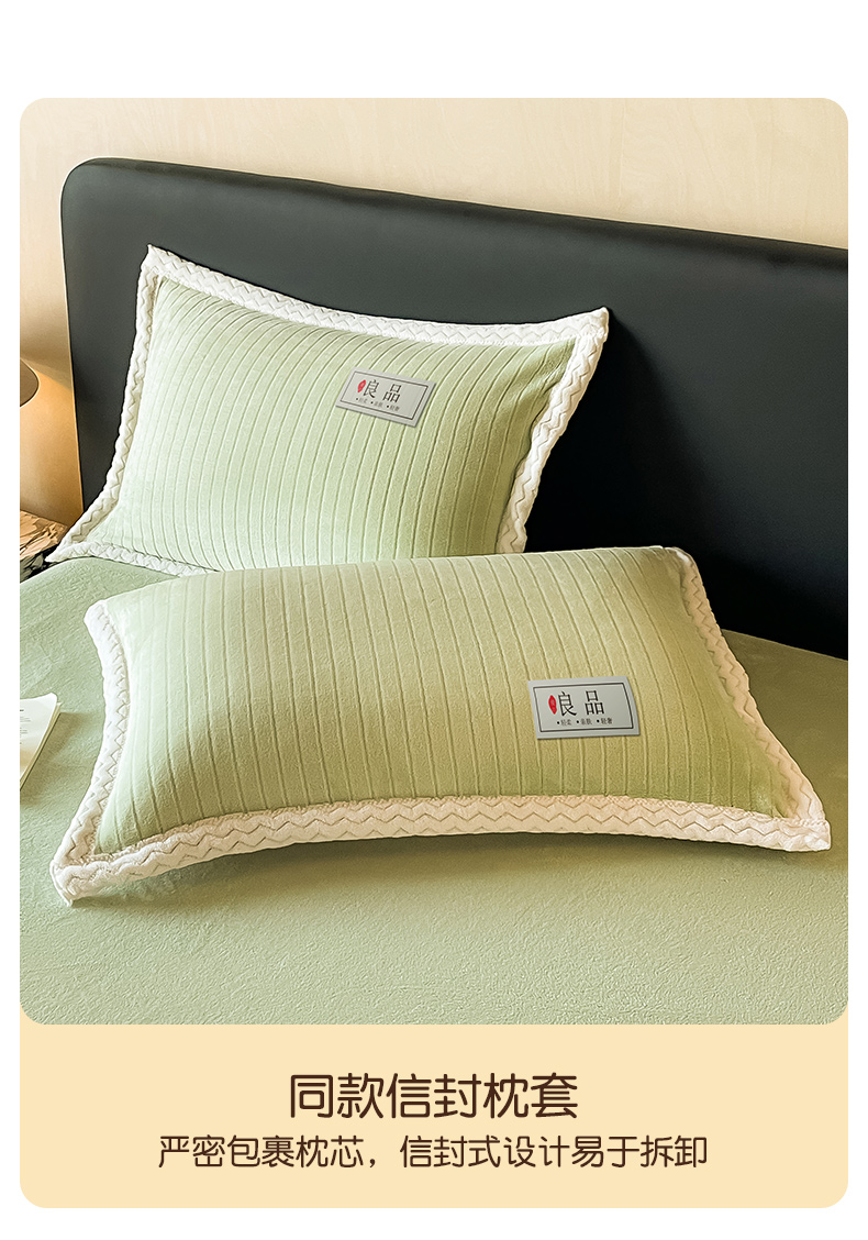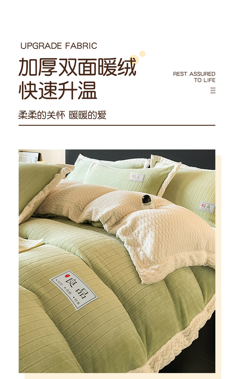 当前位置: 91家纺网 > 商品网购 > 床品套件 > 四件套 > 牛奶绒四件套 > 全季家居 2024新款A类纯色印花波浪大包边牛奶绒贝贝绒加厚保暖四件套 果绿