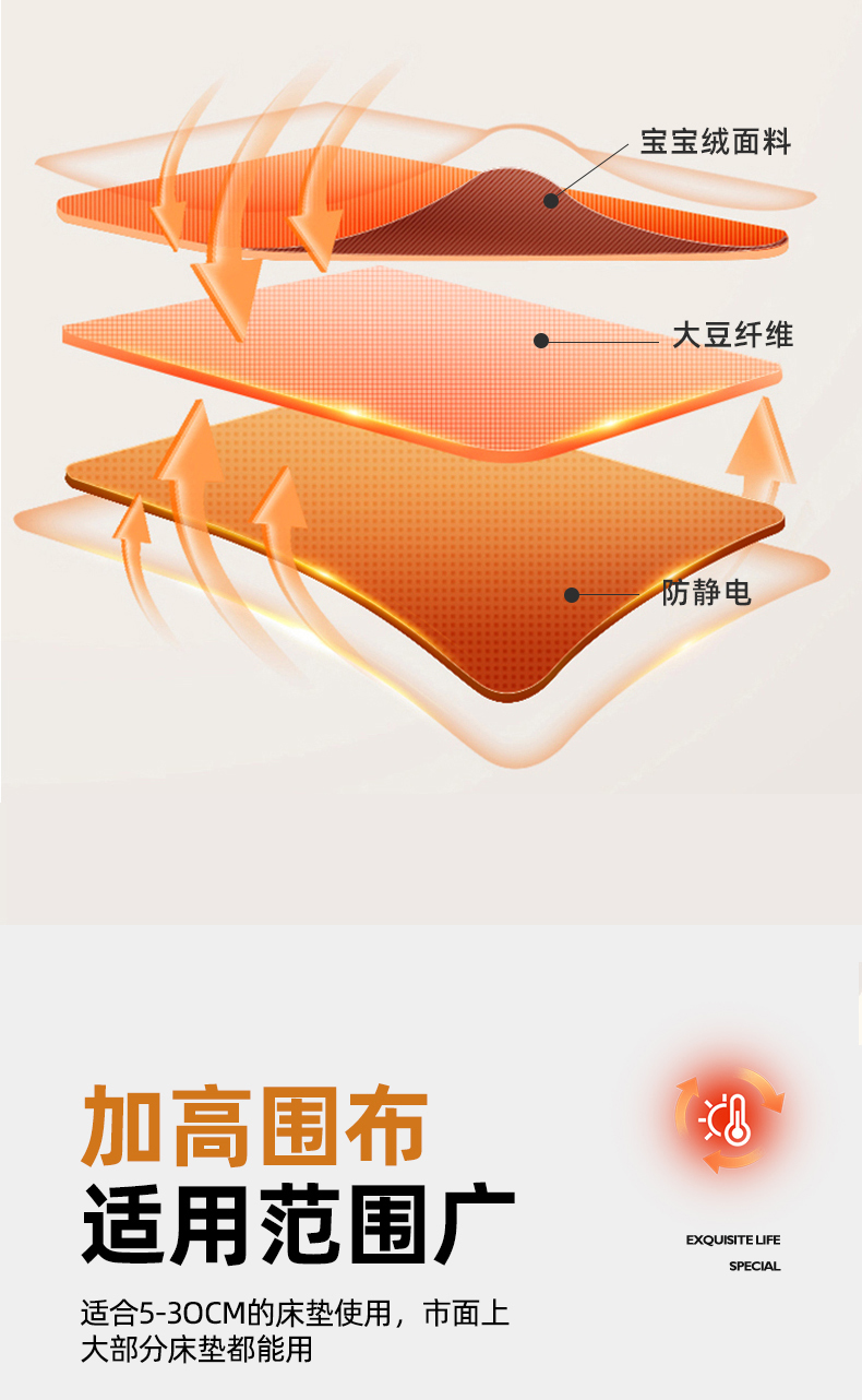 • 91家纺网 家纺一手货源 找家纺 (总)好眠好梦家纺 2025新款全棉50S抗菌防螨夹棉防水床笠-无限之光系列,白色,粉色,卡其,深灰,天蓝,烟灰