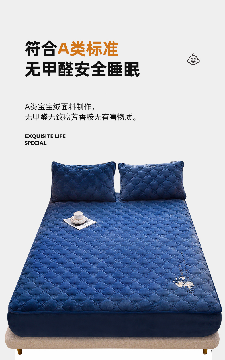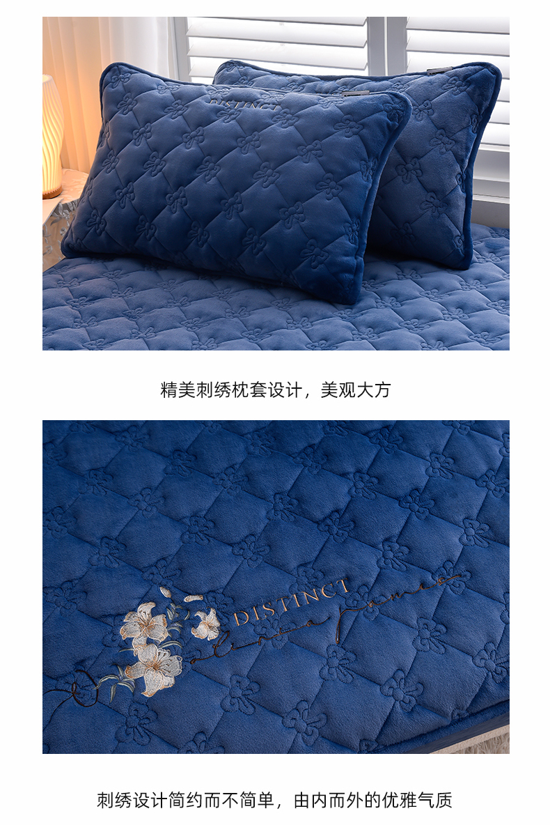 • 91家纺网 家纺一手货源 找家纺 好眠好梦家纺 2024新款A类宝宝绒床笠-百合花开 宾利蓝