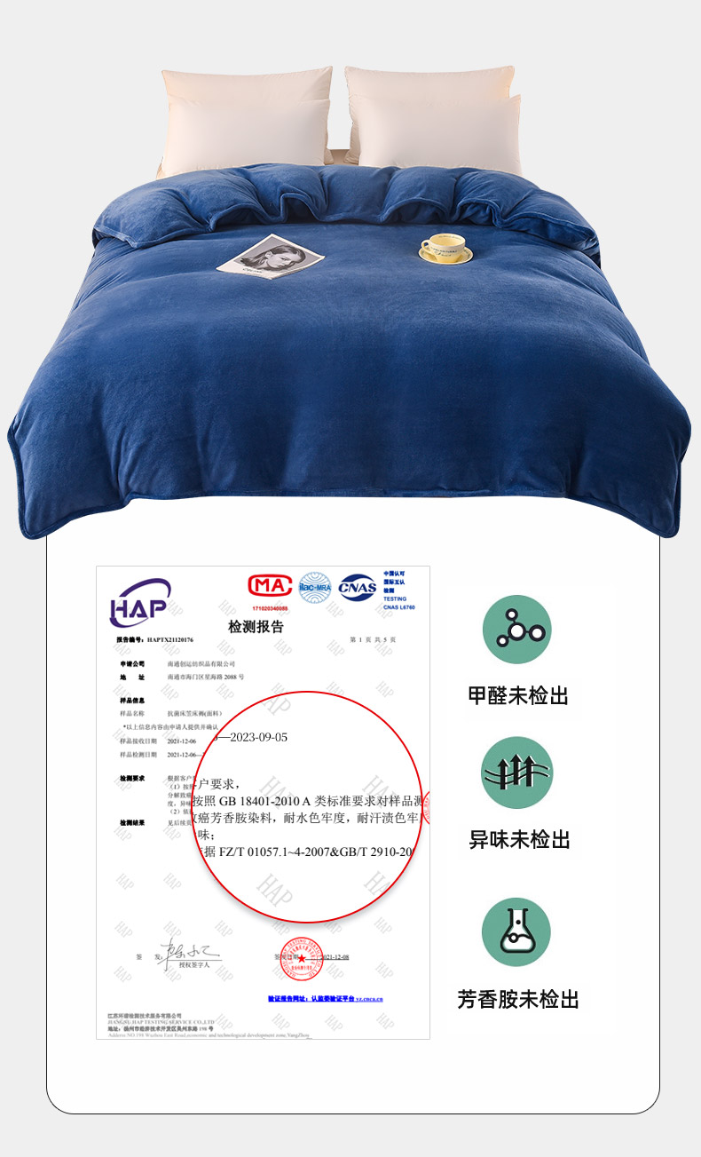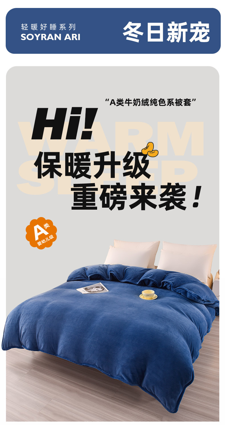 好眠好梦家纺 2024新款牛奶绒纯色单被套 宾利蓝