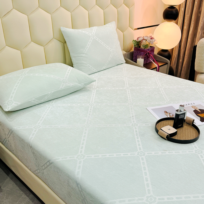 商品名称:太阳树家纺 2025新款A类雪尼尔提花绒床笠 一叶倾新绿