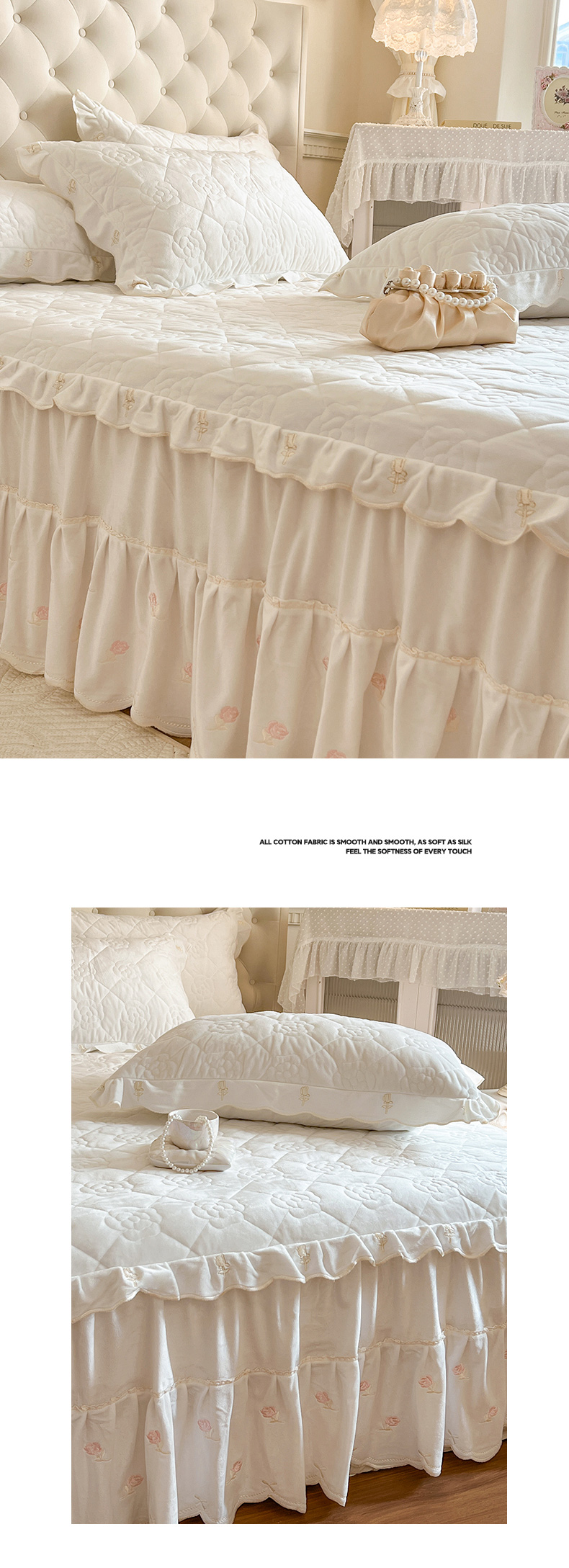(总)麒豆豆 2025新款全棉蕾丝边床裙款床笠-晨暮花间,晨暮花间-绯红,晨暮花间-粉色,晨暮花间-麦绿,晨暮花间-米色,晨暮花间-浅紫,晨暮花间-雾蓝