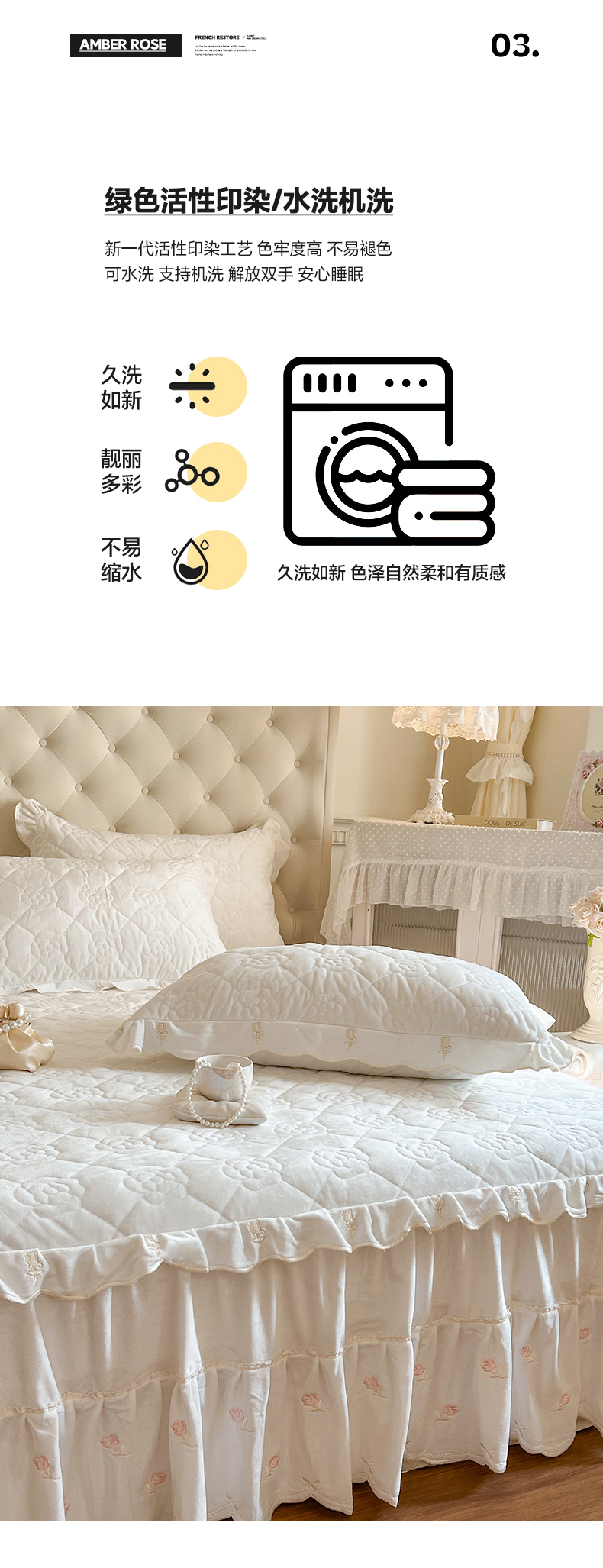 (总)麒豆豆 2025新款优舒棉花边床笠-蜜糖熊,白,粉,黄,灰,绿