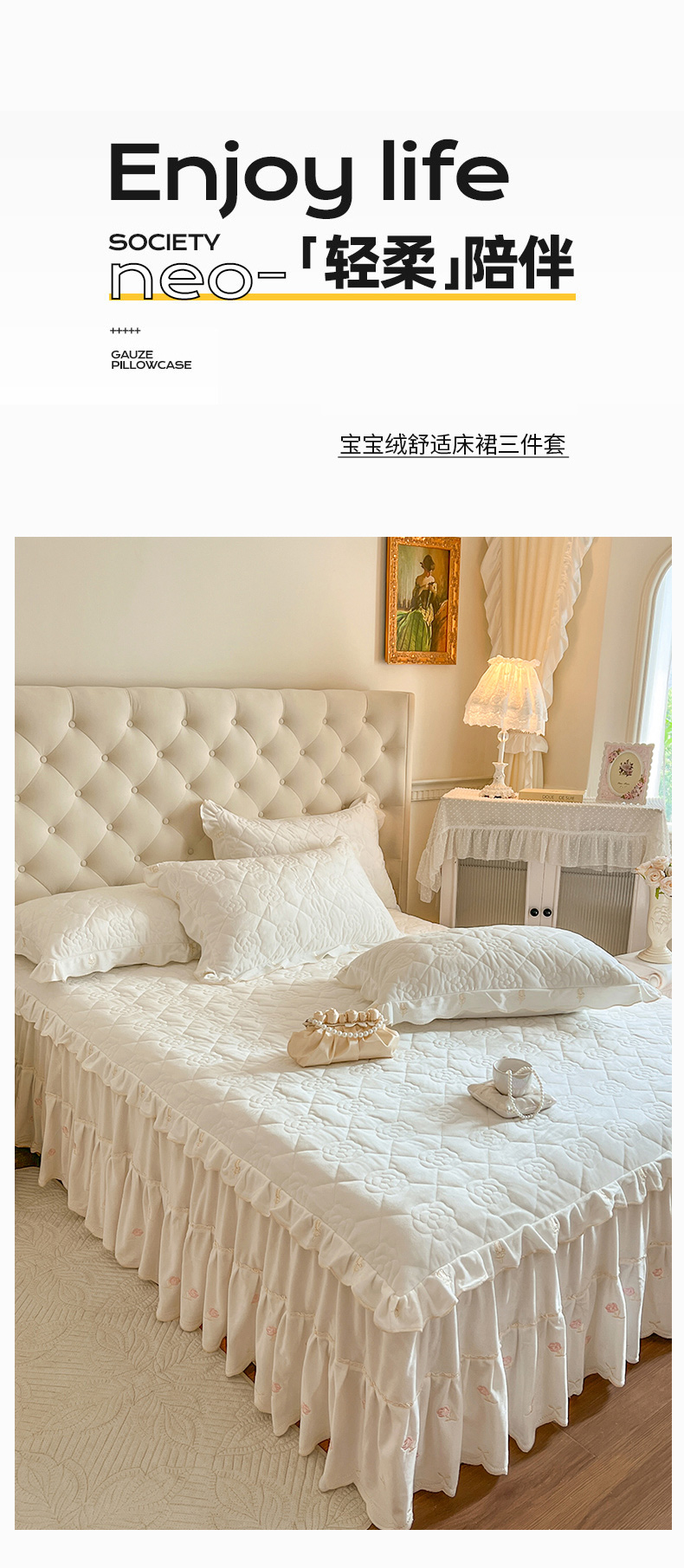 麒豆豆 2024新款宝宝绒床裙三件套-乐伊 乐伊-白