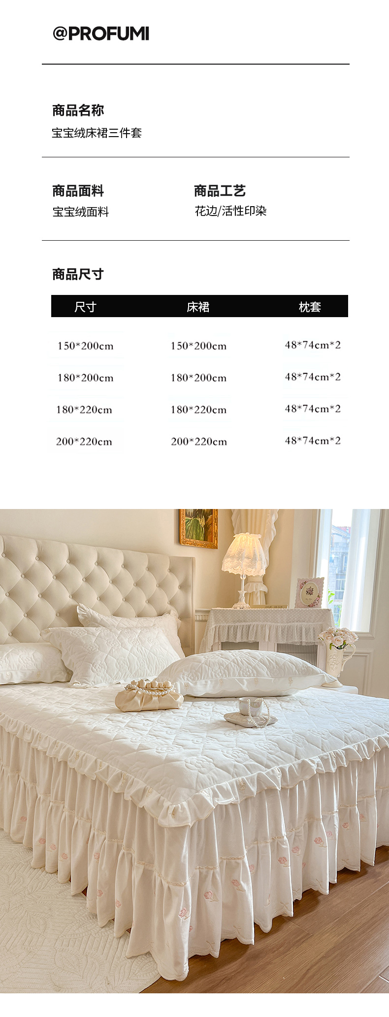 商品名称:麒豆豆 2024新款宝宝绒床裙三件套-乐伊 乐伊-白