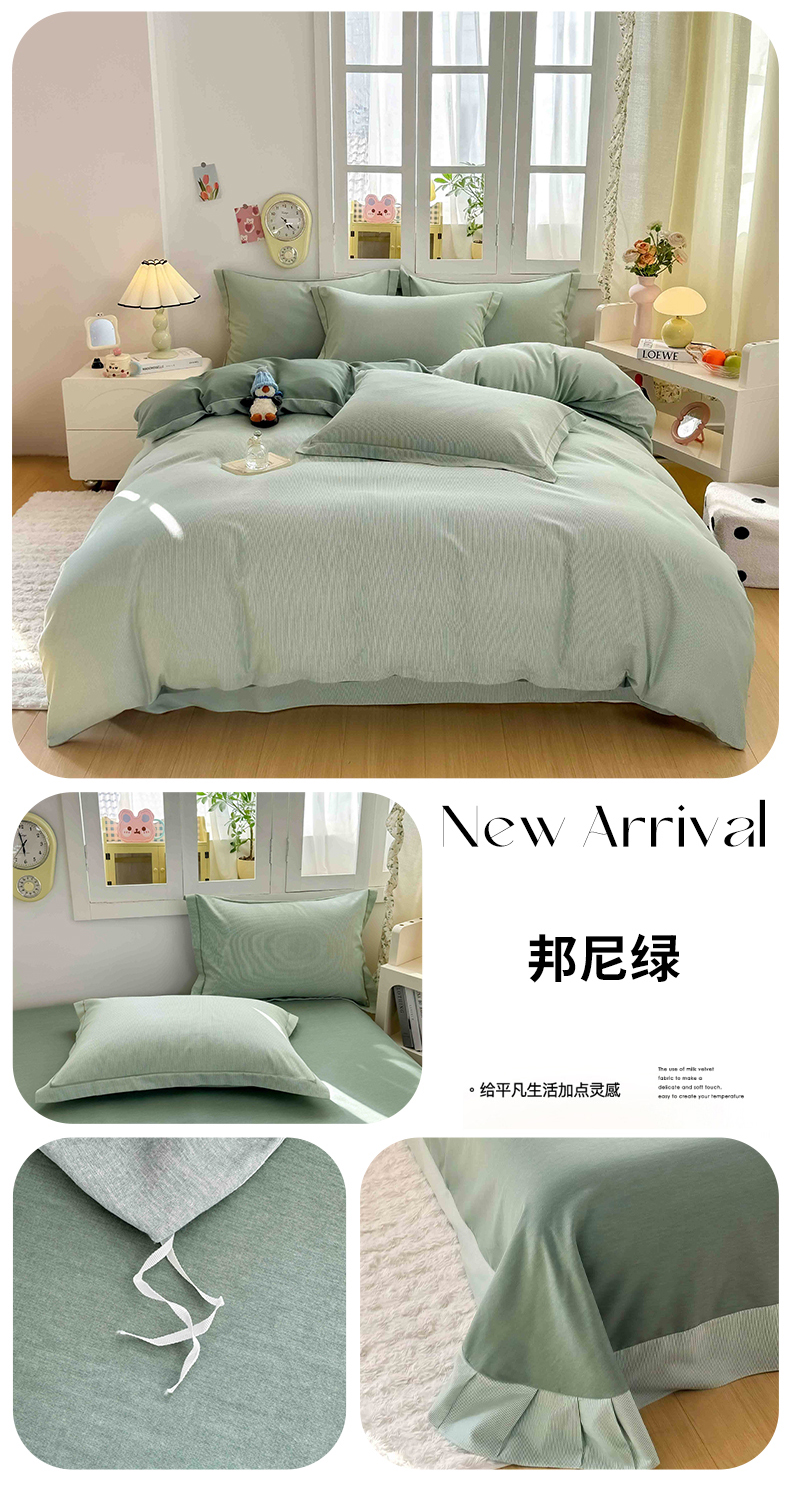 当前位置: 91家纺网 > 商品网购 > 床品套件 > 四件套 > 普通磨毛四件套 > 优品阁 2024新款全棉磨毛四件套 邦尼绿