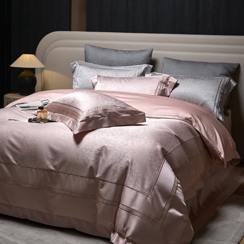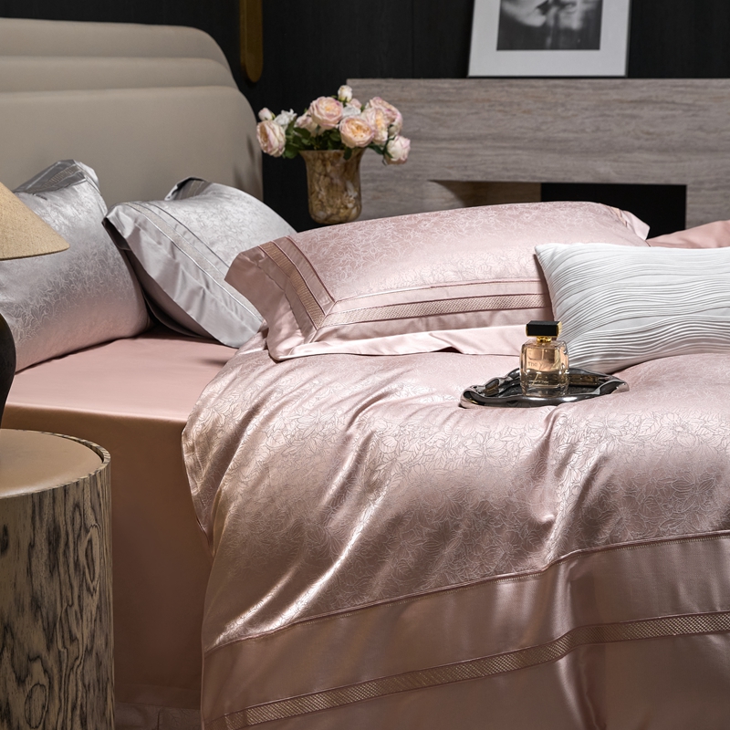 (总)榻尚家居 2023新款纯棉贡缎提花四件套(会员-10),缤兰,烟粉
