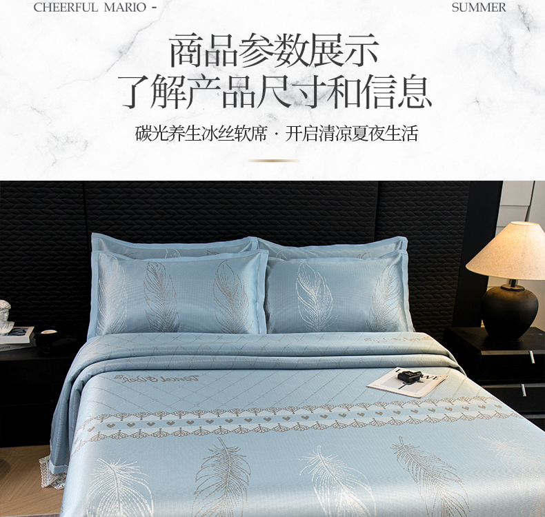 商品名称:21度C 2025新款A类1800D冰丝凉感碳光软席-提供买家秀 羽毛-蓝
