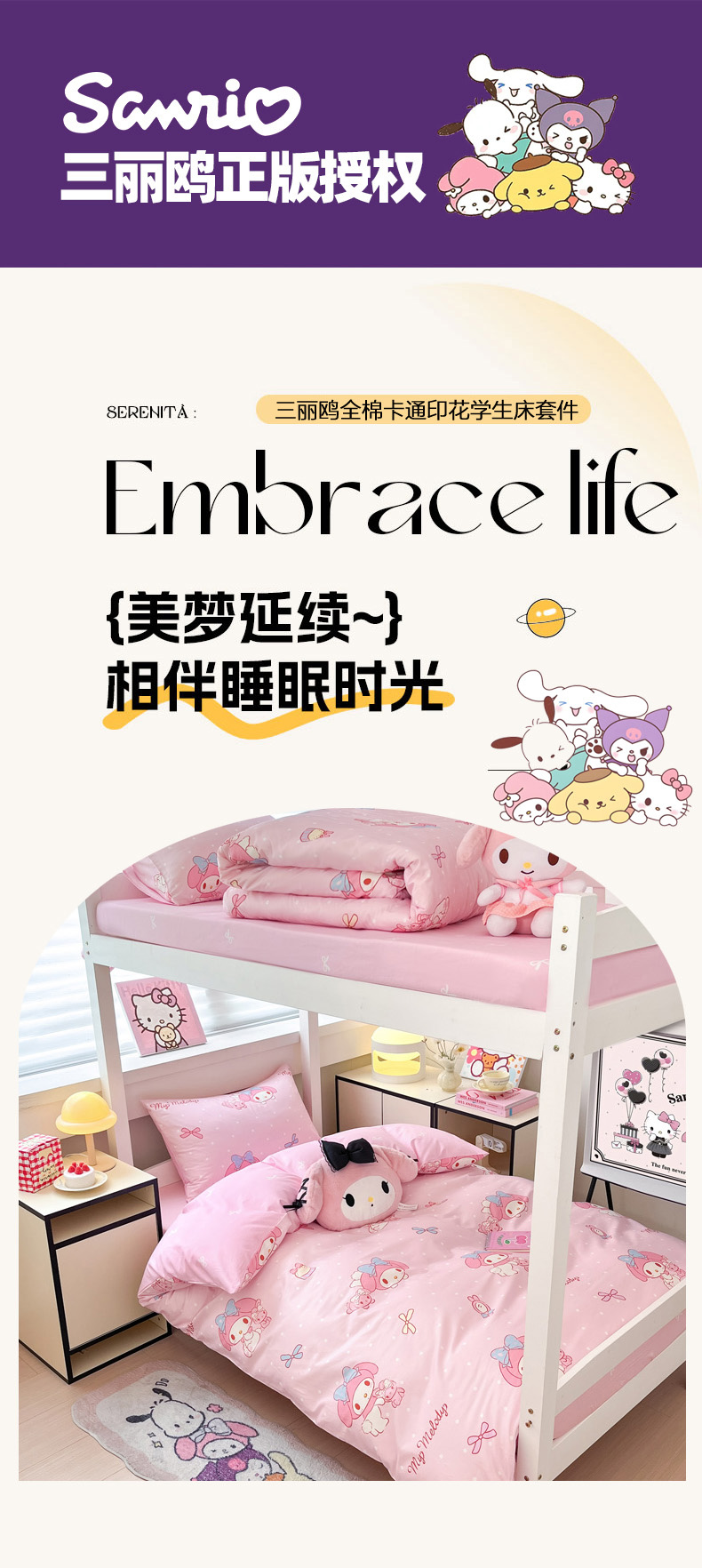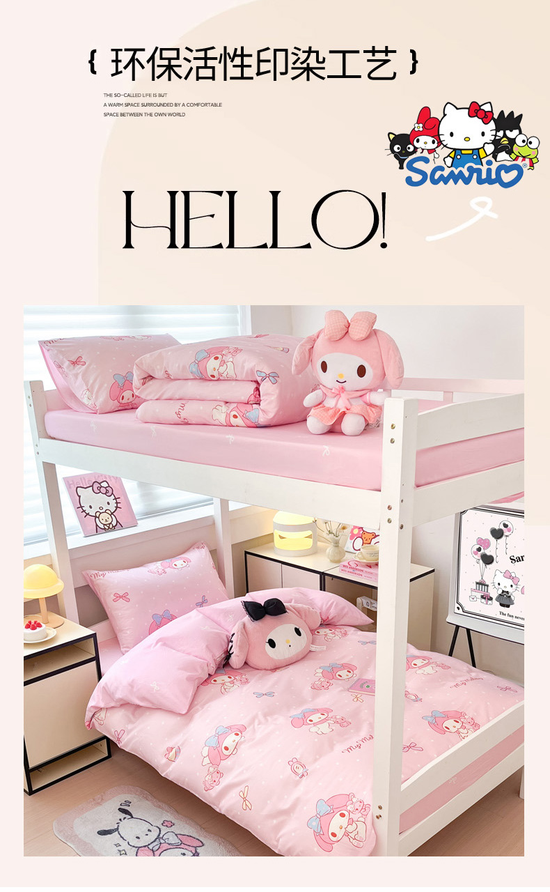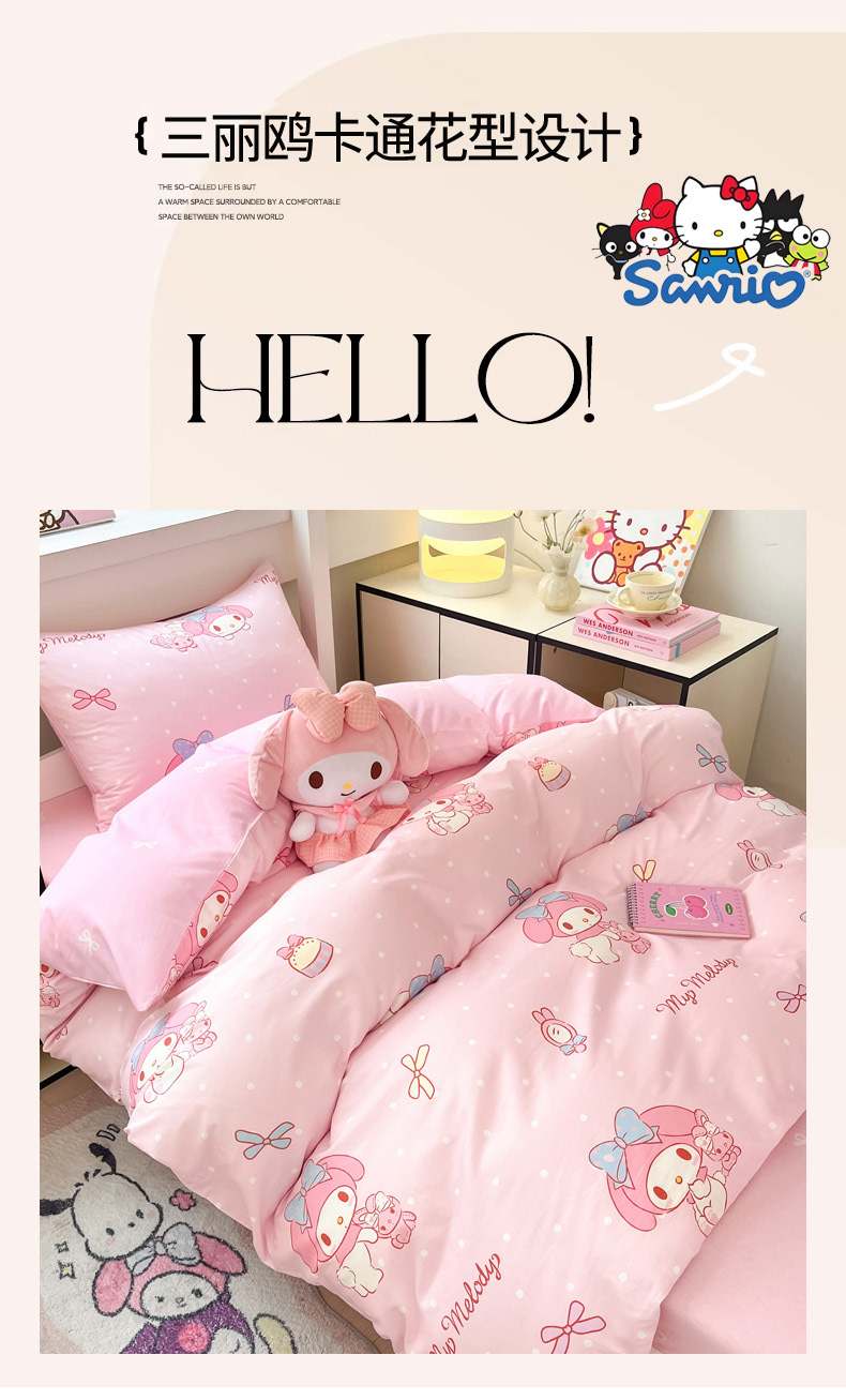 当前位置: 91家纺网 > 商品网购 > 床品套件 > 四件套 > 全棉普通四件套 > 暮思家居 2025新款三丽鸥授权全棉少女印花系列学生宿舍三件套四件套 蝴蝶结美乐蒂