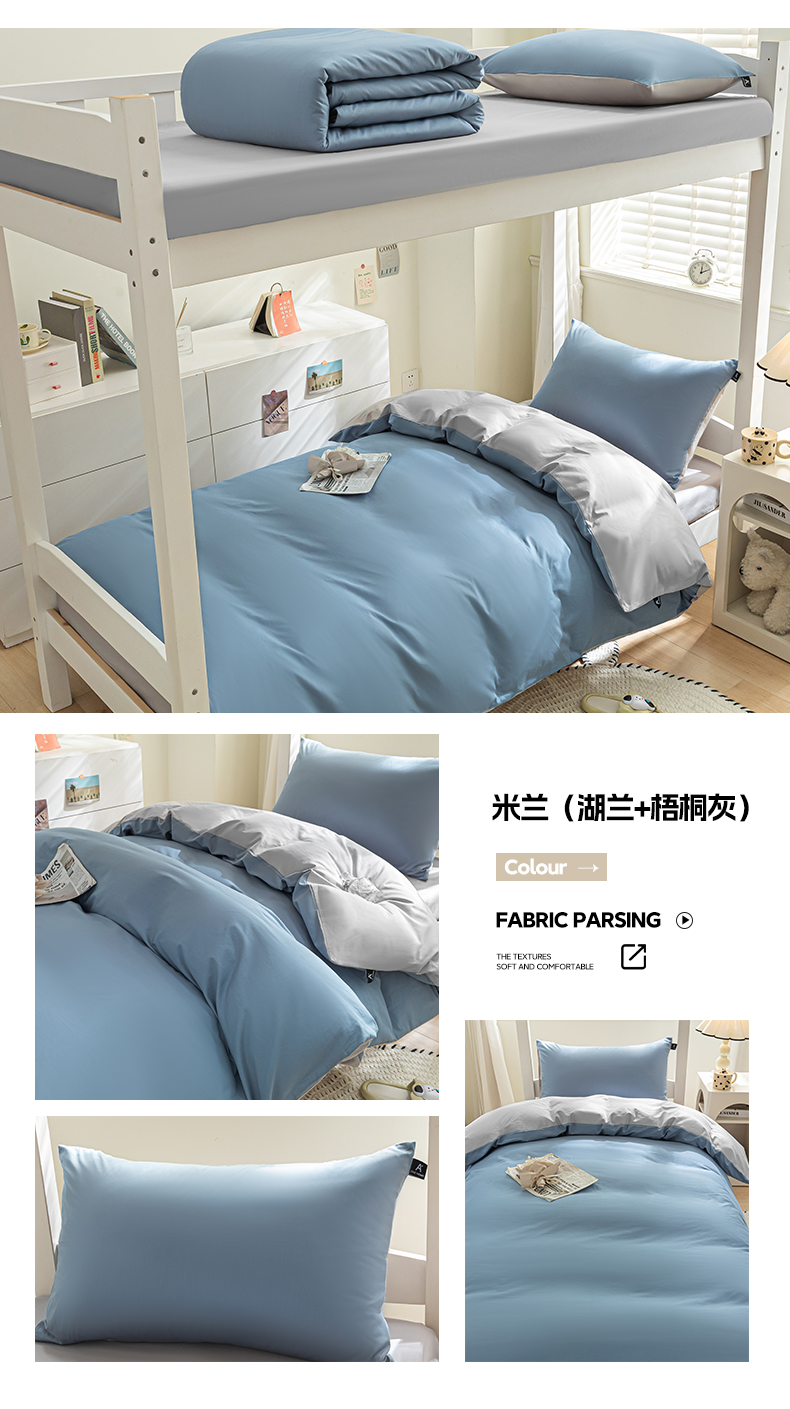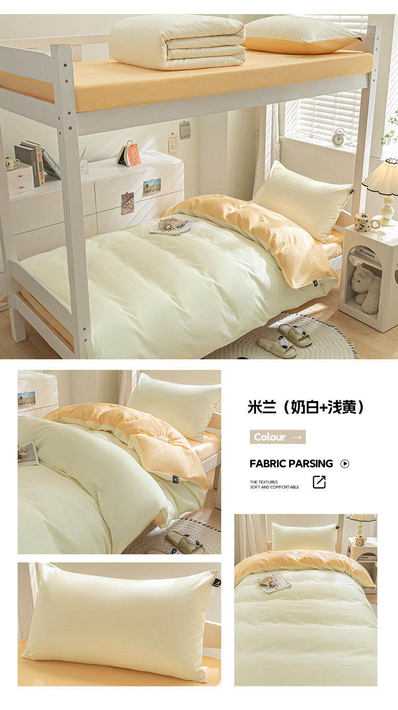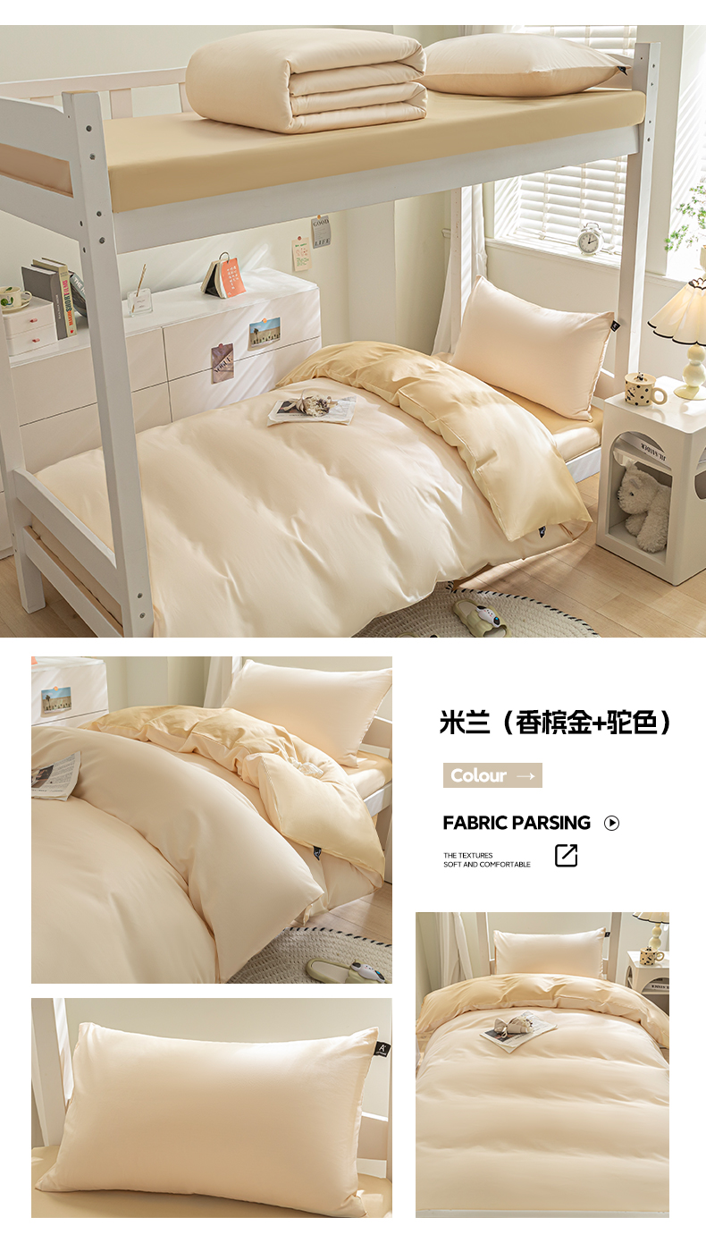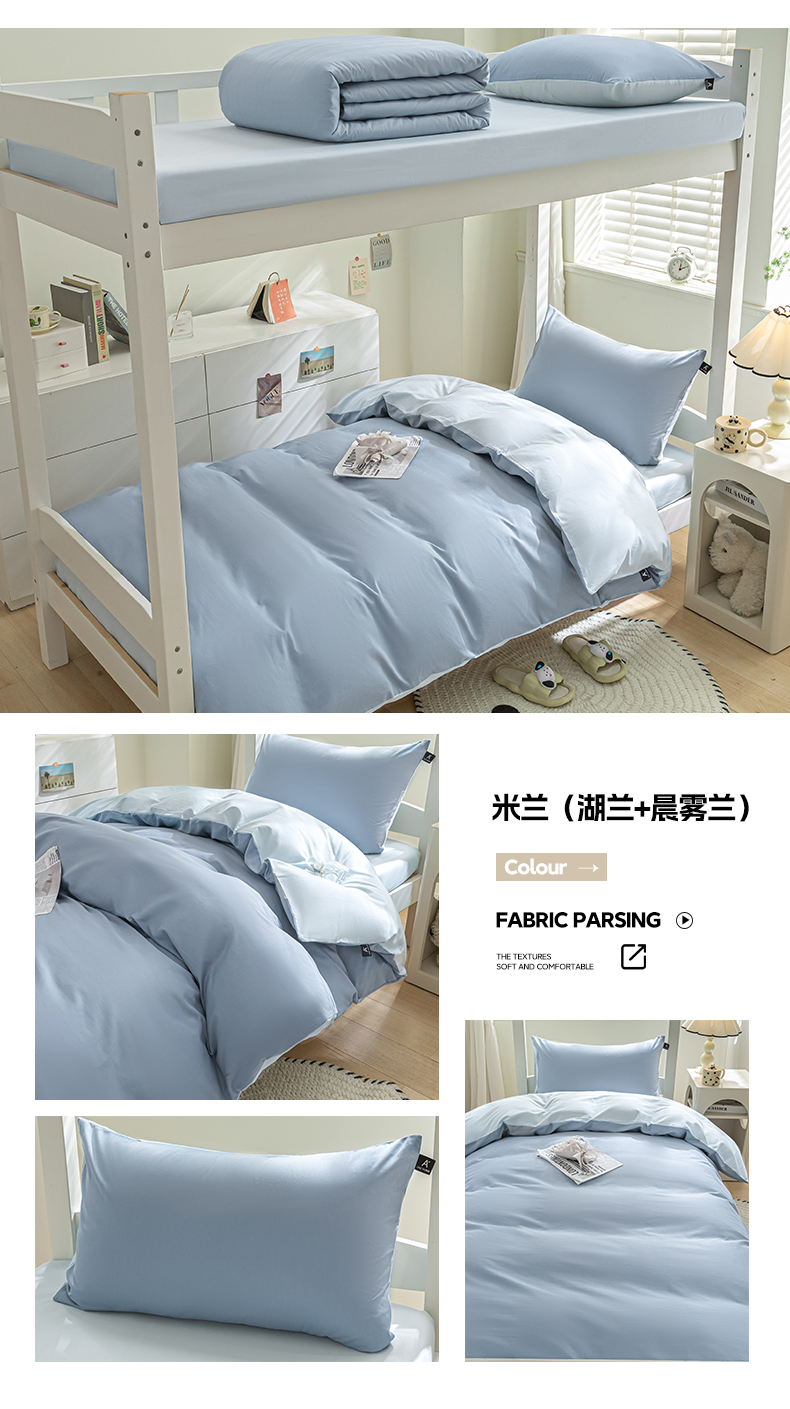 商品名称:(总)涵宸家纺 2025新款全棉拼色纯色宿舍套件-米兰