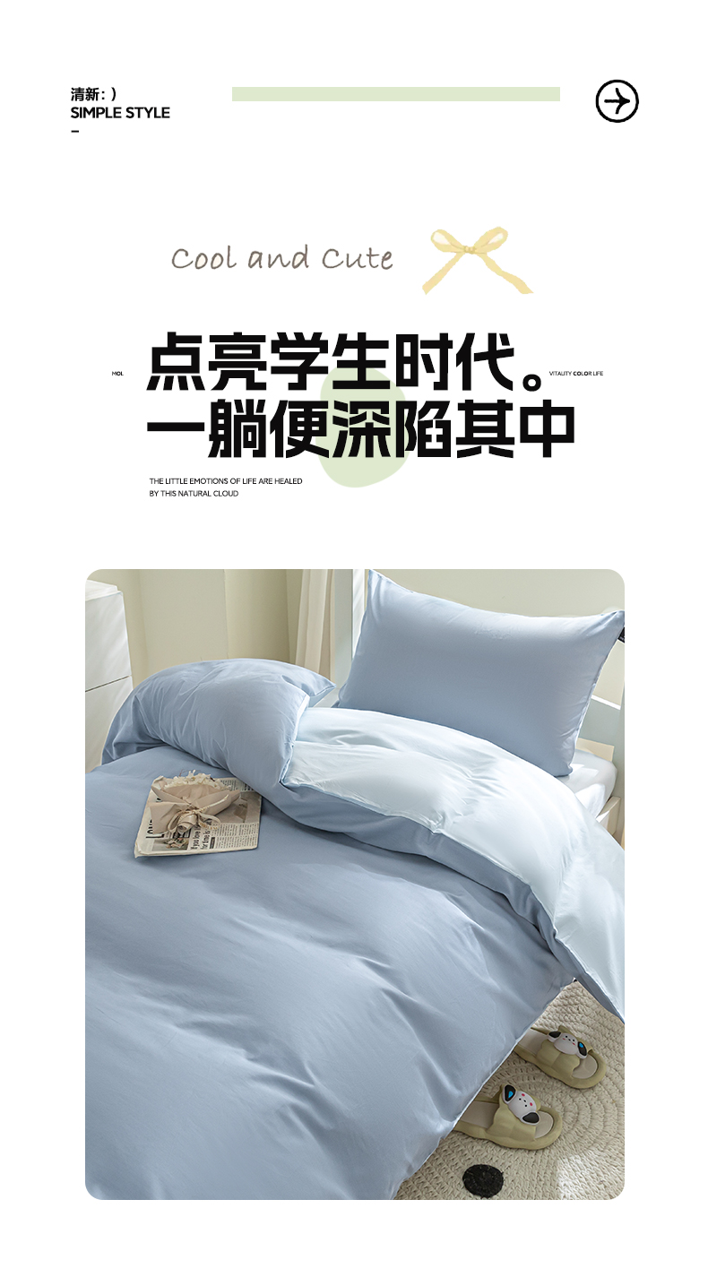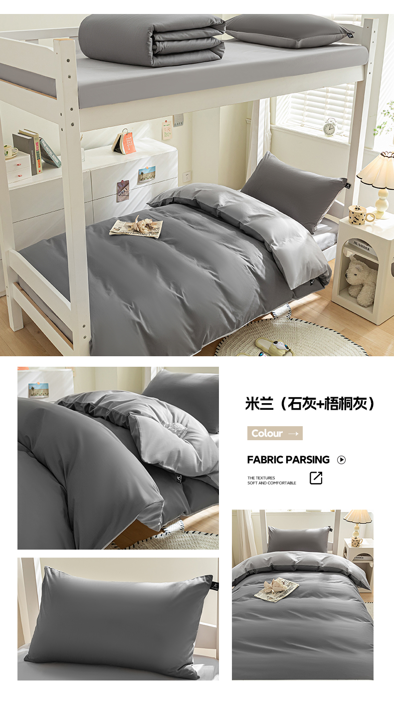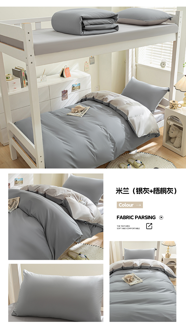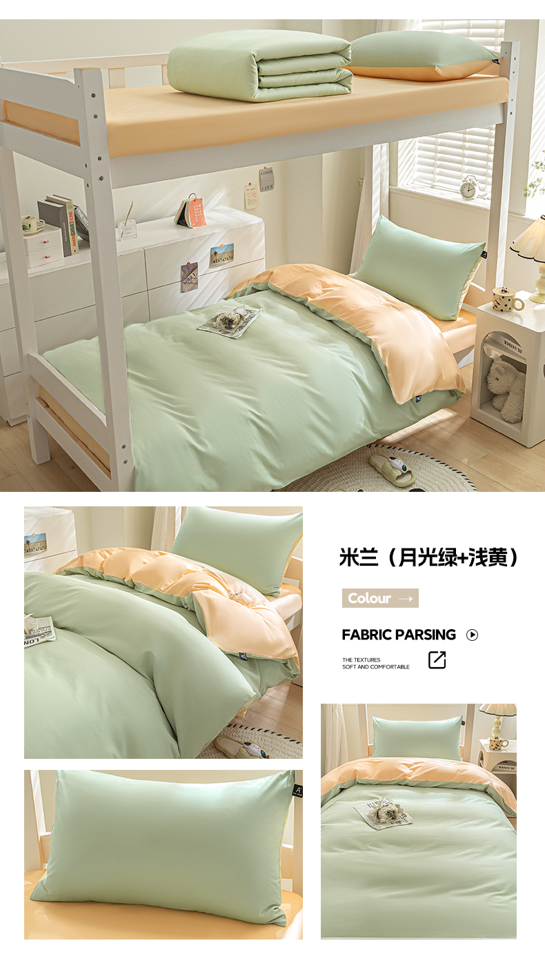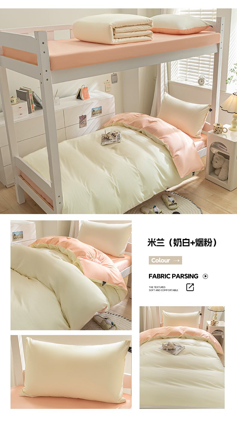 商品名称:(总)涵宸家纺 2025新款全棉拼色纯色宿舍套件-米兰