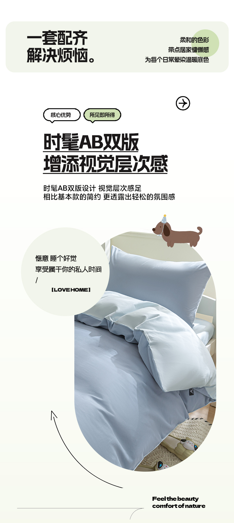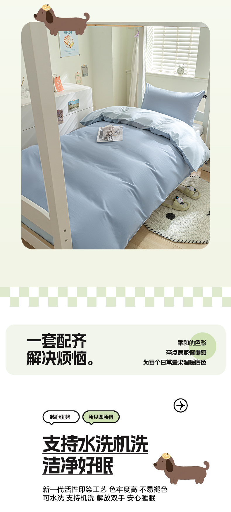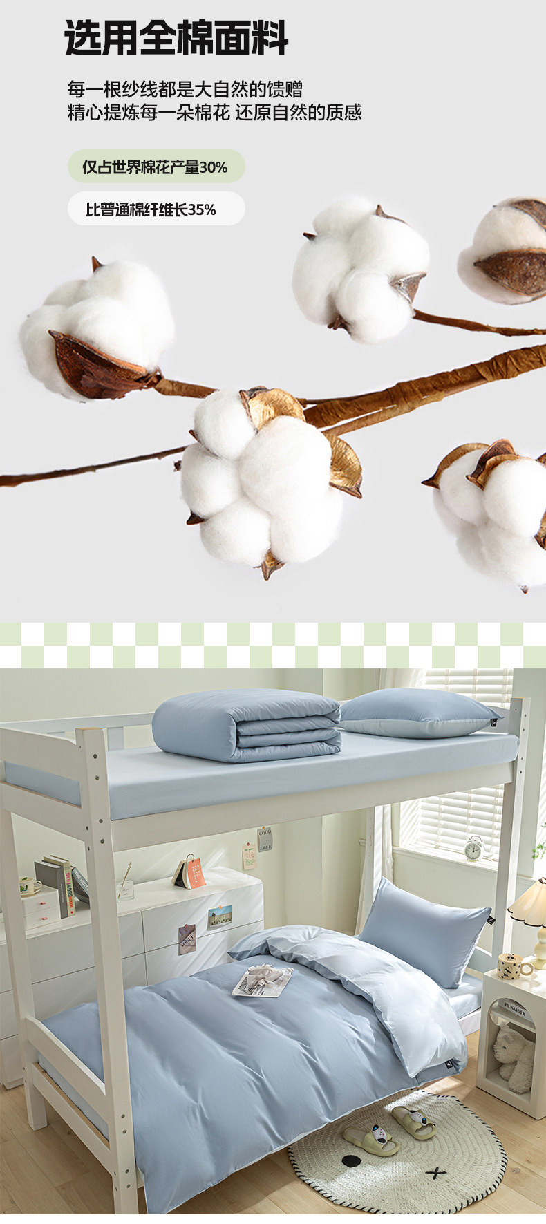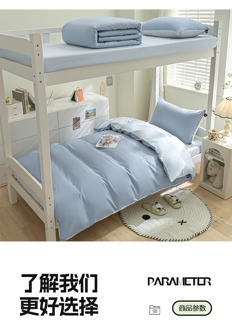 商品名称:(总)涵宸家纺 2025新款全棉拼色纯色宿舍套件-米兰