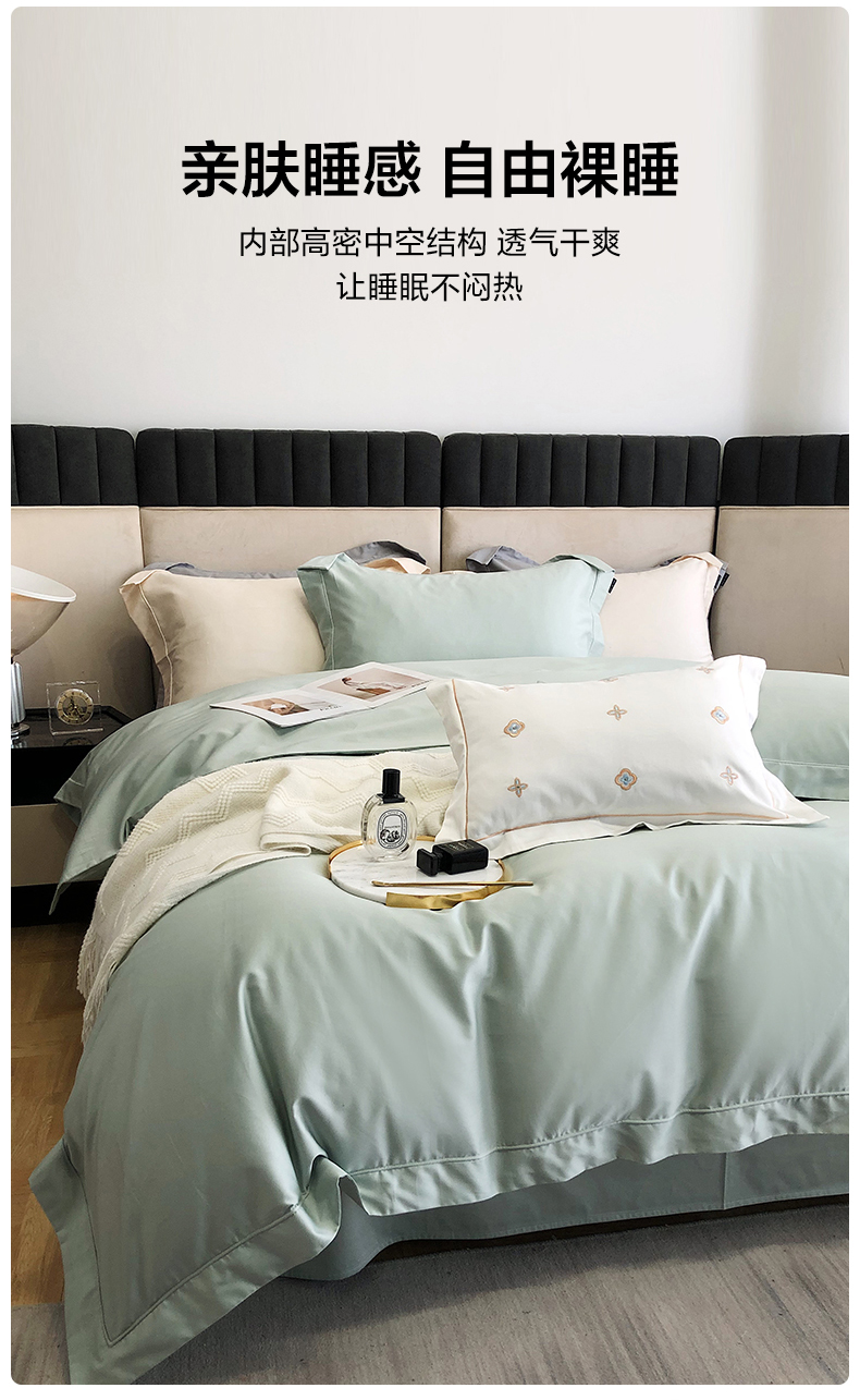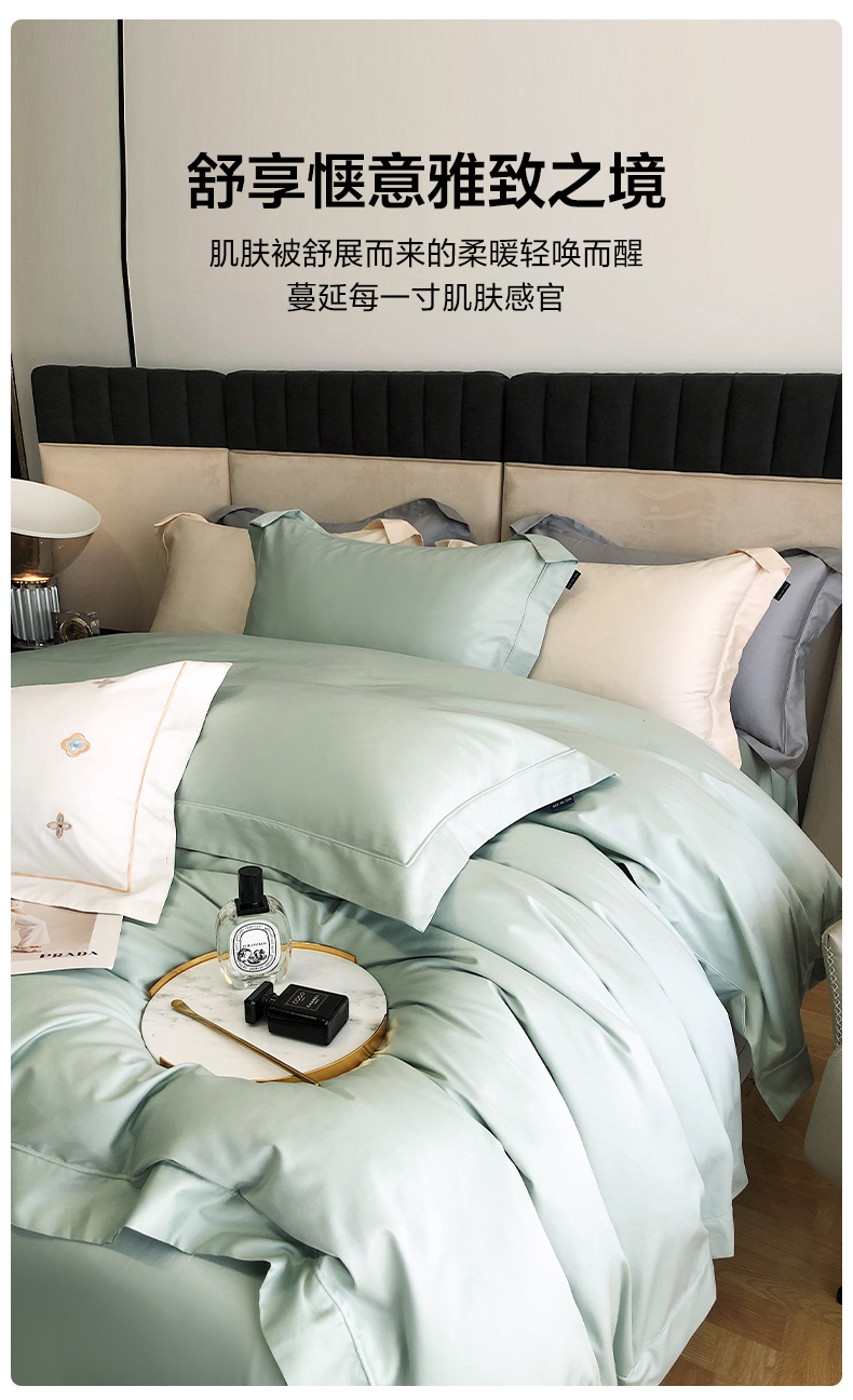 乐美家纺 2025新款A类100支—简爱系列埋线工艺四件套 蒂芙尼绿
