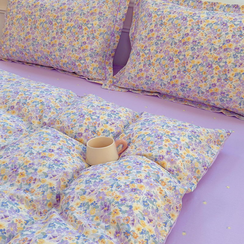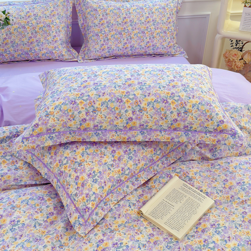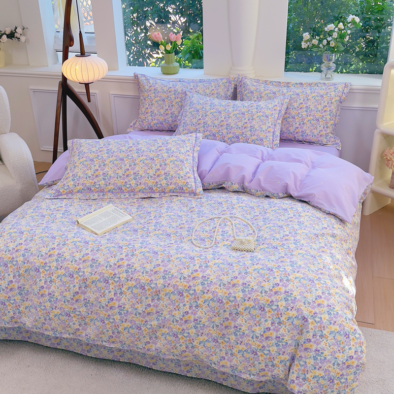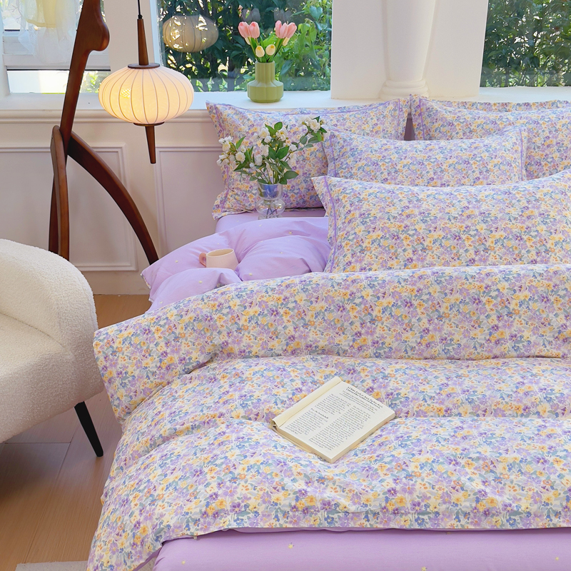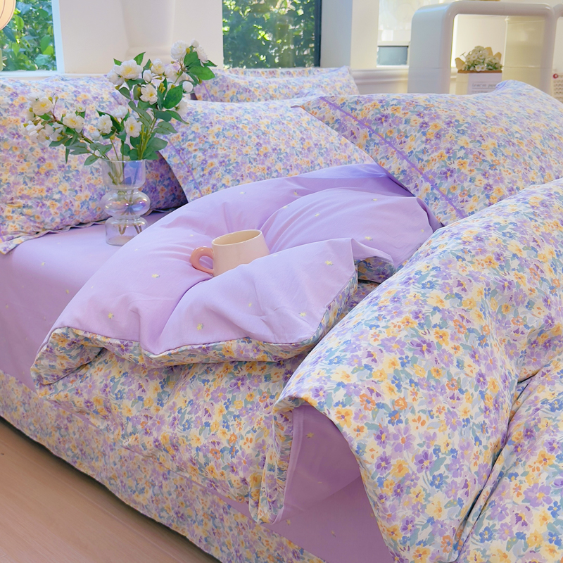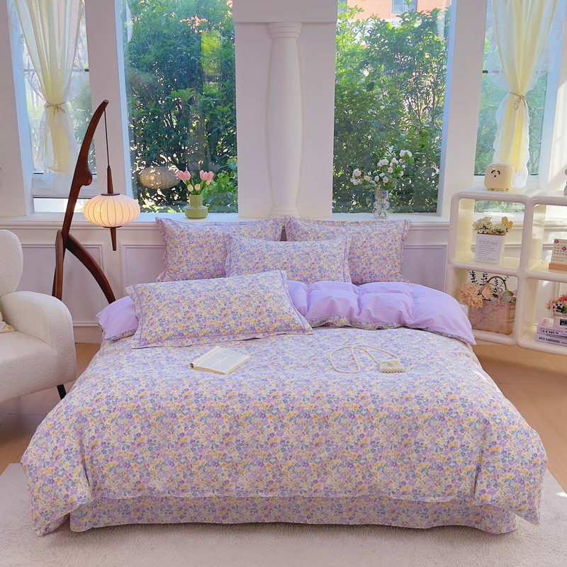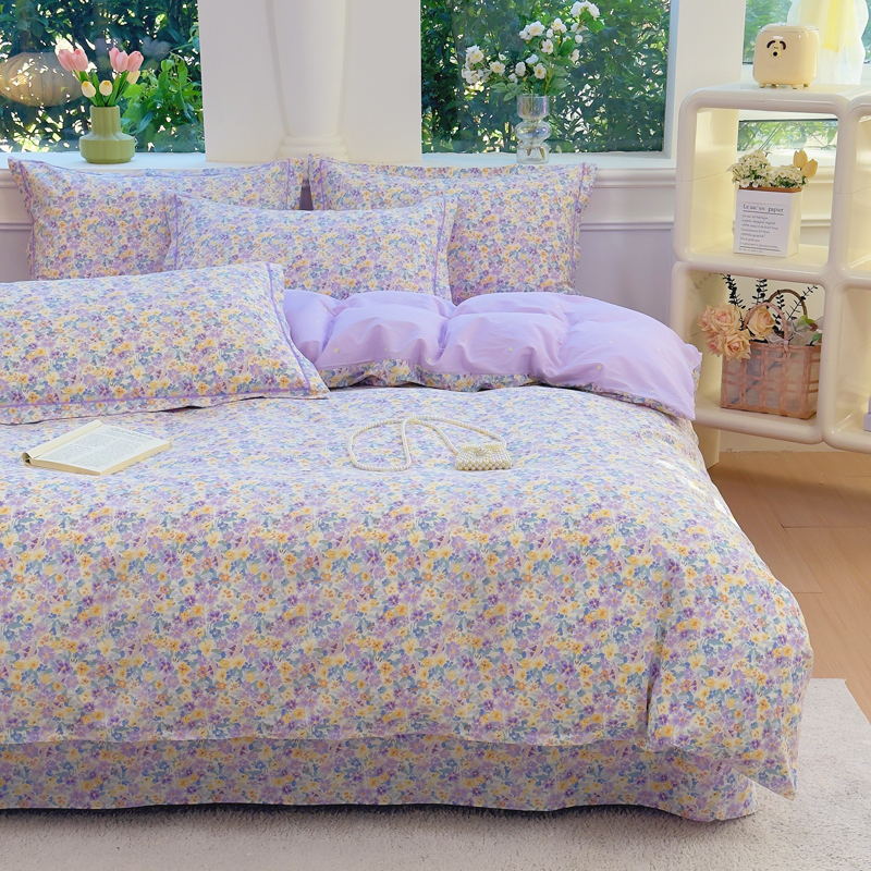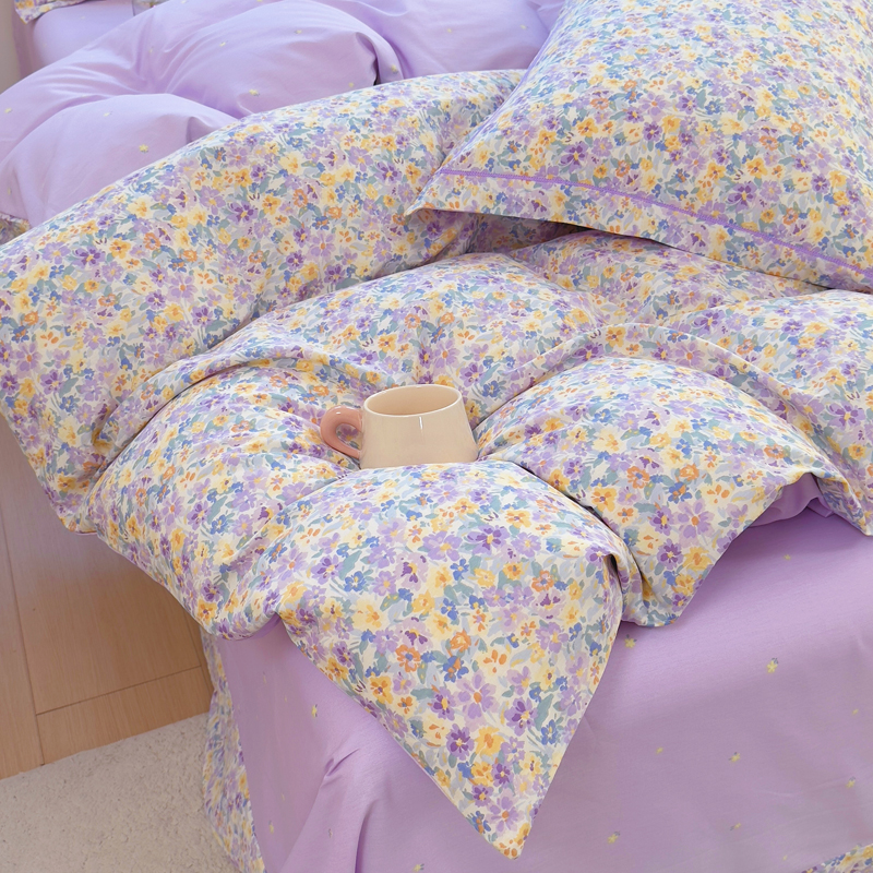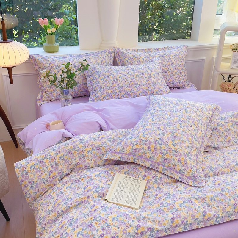 铭博家纺 新款直播爆款网红全棉四件套13070印花吊边一字绣纯棉被套工艺款 花语呢喃,花语呢喃