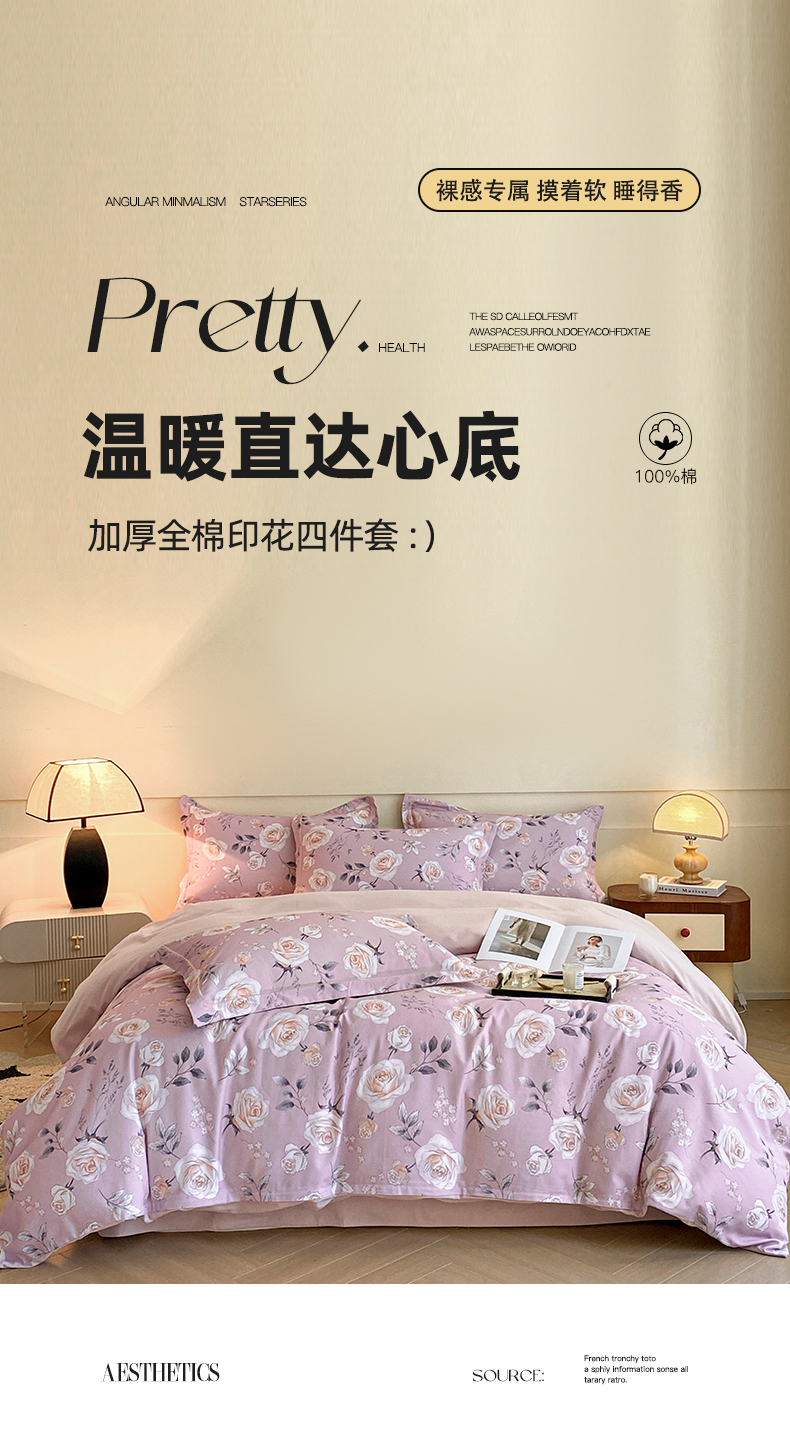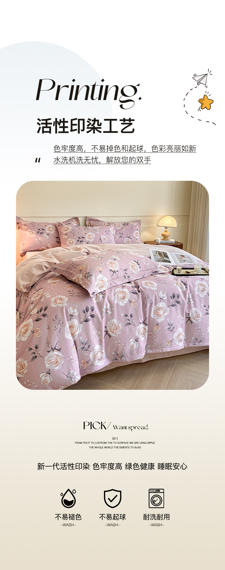 格里芬家纺 2025全棉加厚磨毛数码印花四件套凯莉