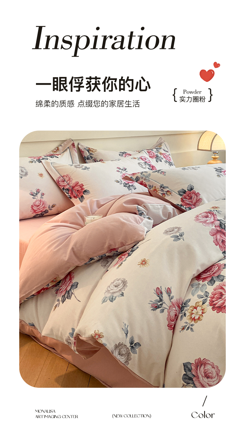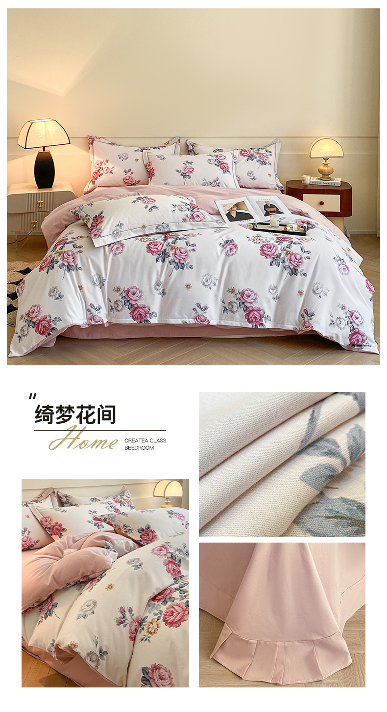 商品名称:格里芬家纺 2025全棉加厚磨毛数码印花四件套绮梦花间