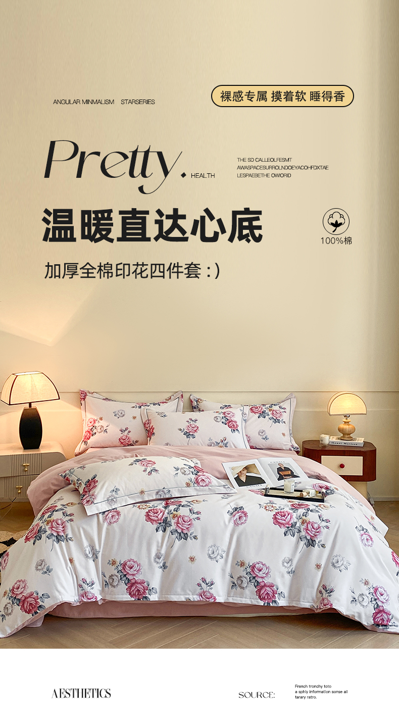 格里芬家纺 2025全棉加厚磨毛数码印花四件套绮梦花间