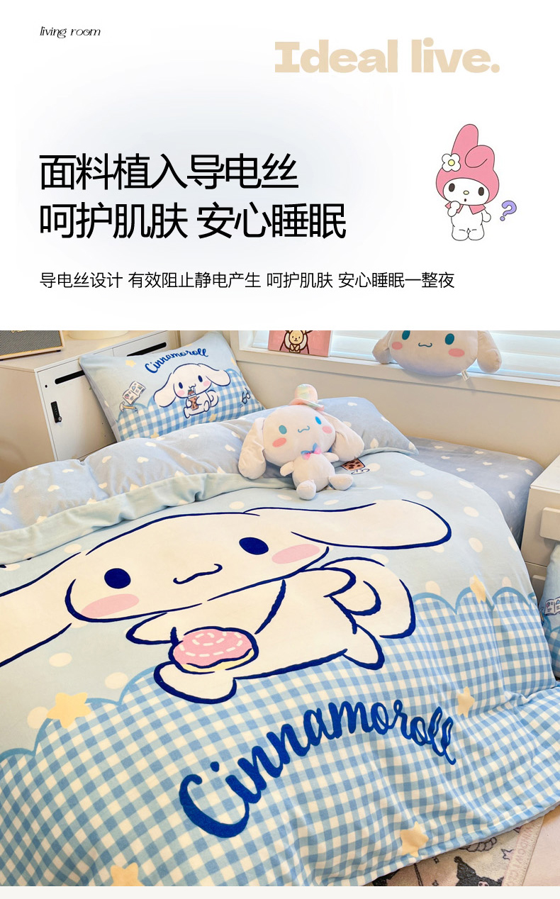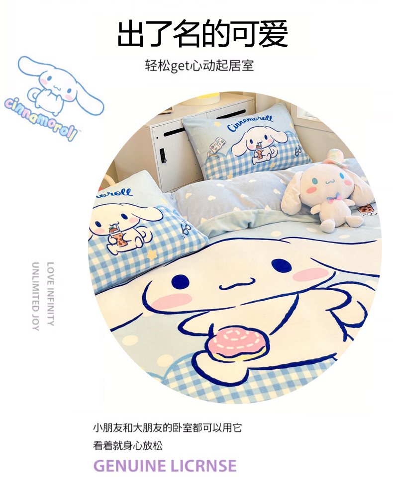当前位置: 91家纺网 > 商品网购 > 床品套件 > 四件套 > 牛奶绒四件套 > 暮思家居 2025新款正版授权三丽鸥大阪数码印花高克重加厚保暖牛奶绒四件套 绒大阪-快乐玉桂狗