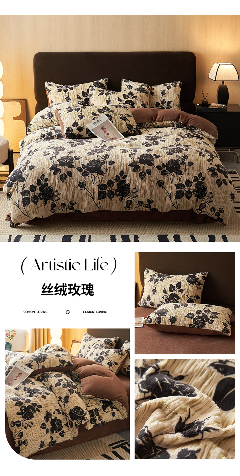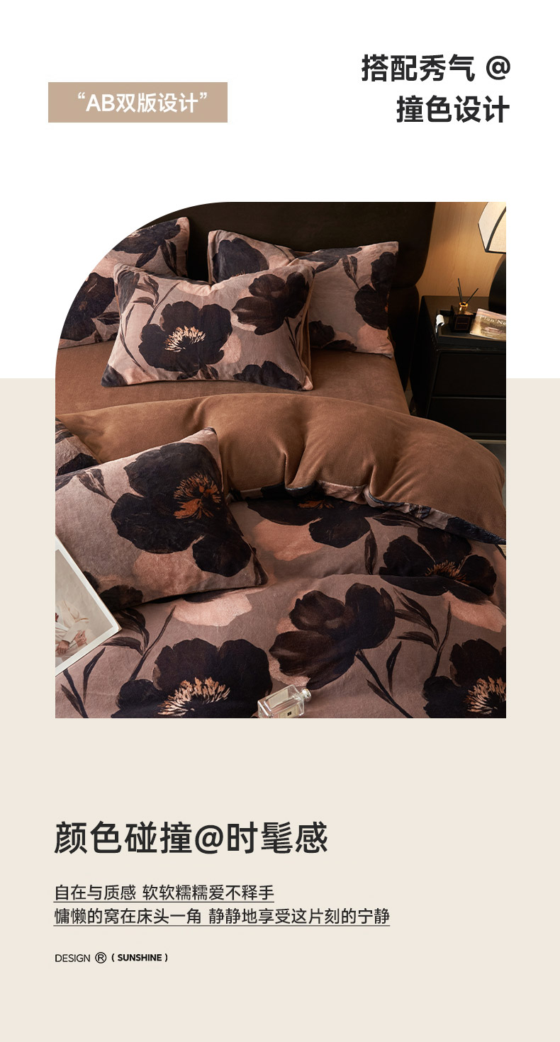 (总)吾秀家居 绒城 230克美拉德数码绒四件套 牛奶绒四件套 - 暖秋系列,花韵,暗香,冬日恋歌-咖,冬日恋歌-棕,冬日森林,花意浓,境玉森林,罗曼庄园,拿铁玫瑰,深紫罗兰,丝绒玫瑰,幽香花语